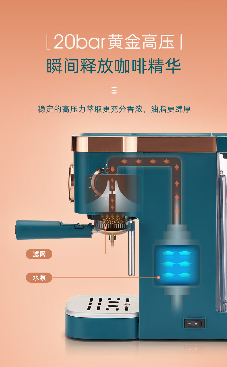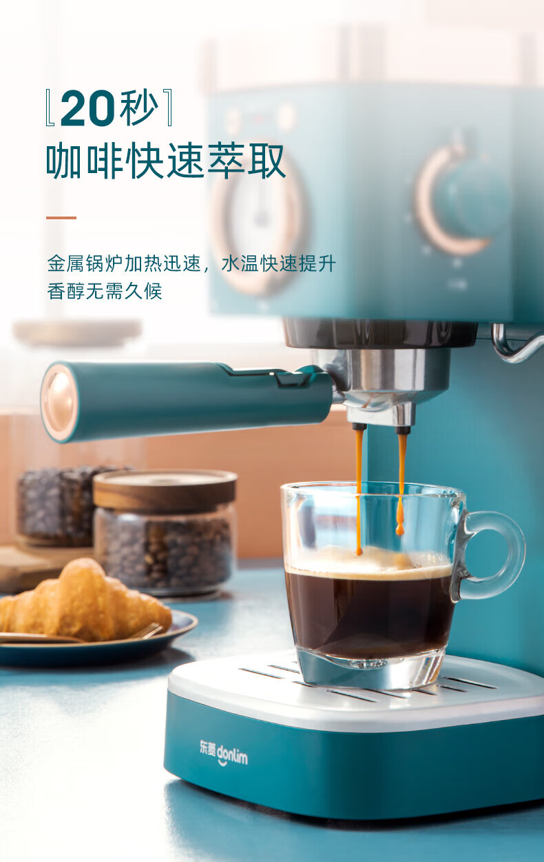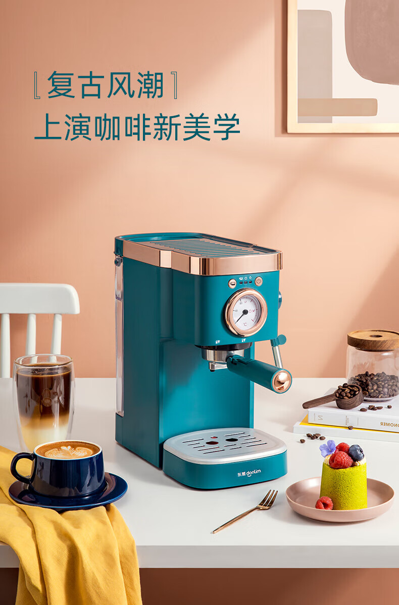 东菱(Donlin)咖啡机 意式浓缩 家用半自动 20bar高压萃取 温度可视 蒸汽打奶泡 DL-KF5400