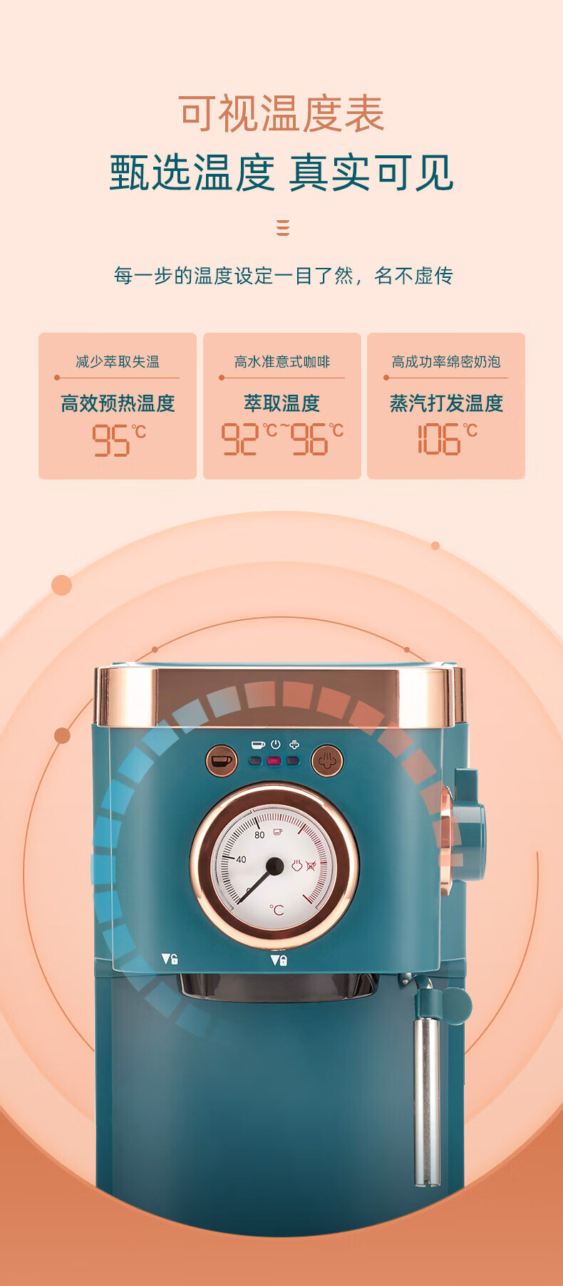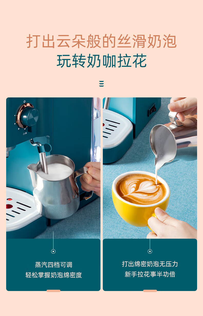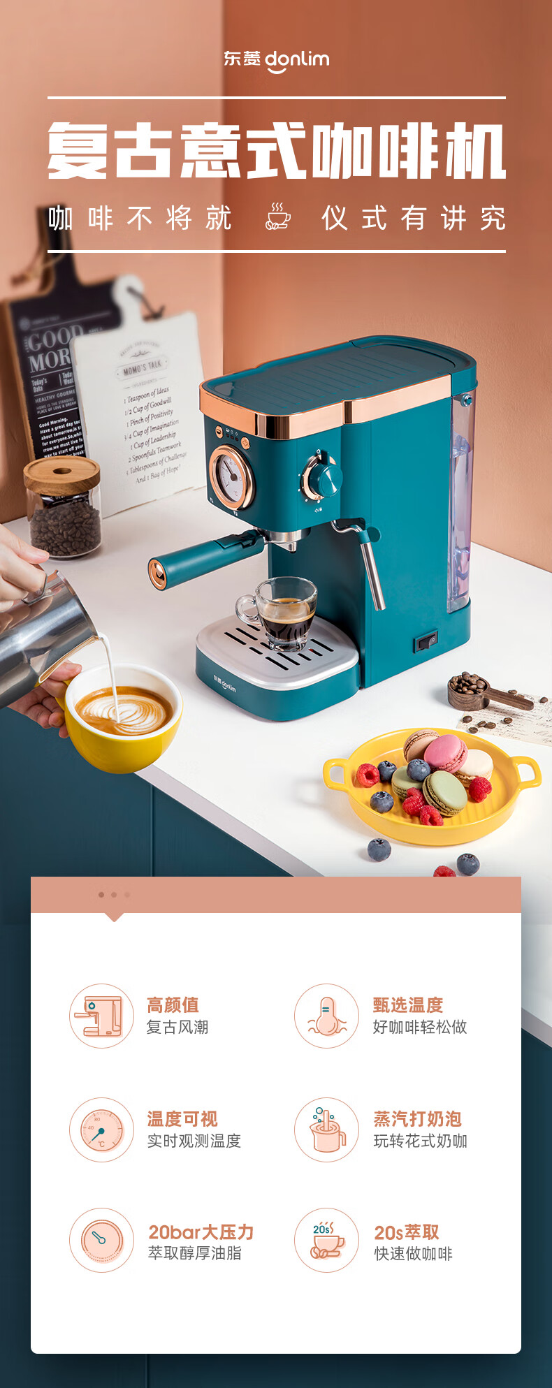 东菱(Donlin)咖啡机 意式浓缩 家用半自动 20bar高压萃取 温度可视 蒸汽打奶泡 DL-KF5400