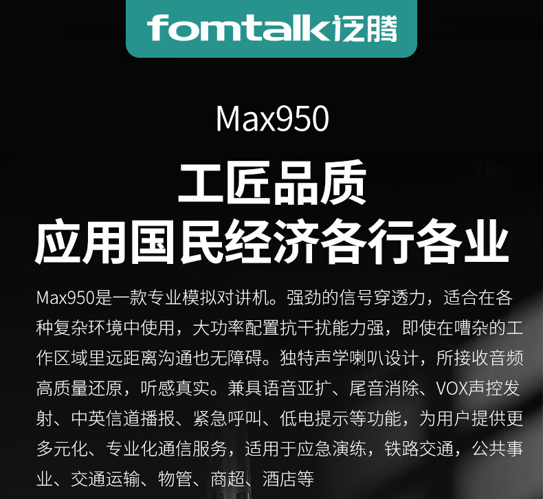 泛腾对讲机 国产全自主 大功率远距离超长待机Max950