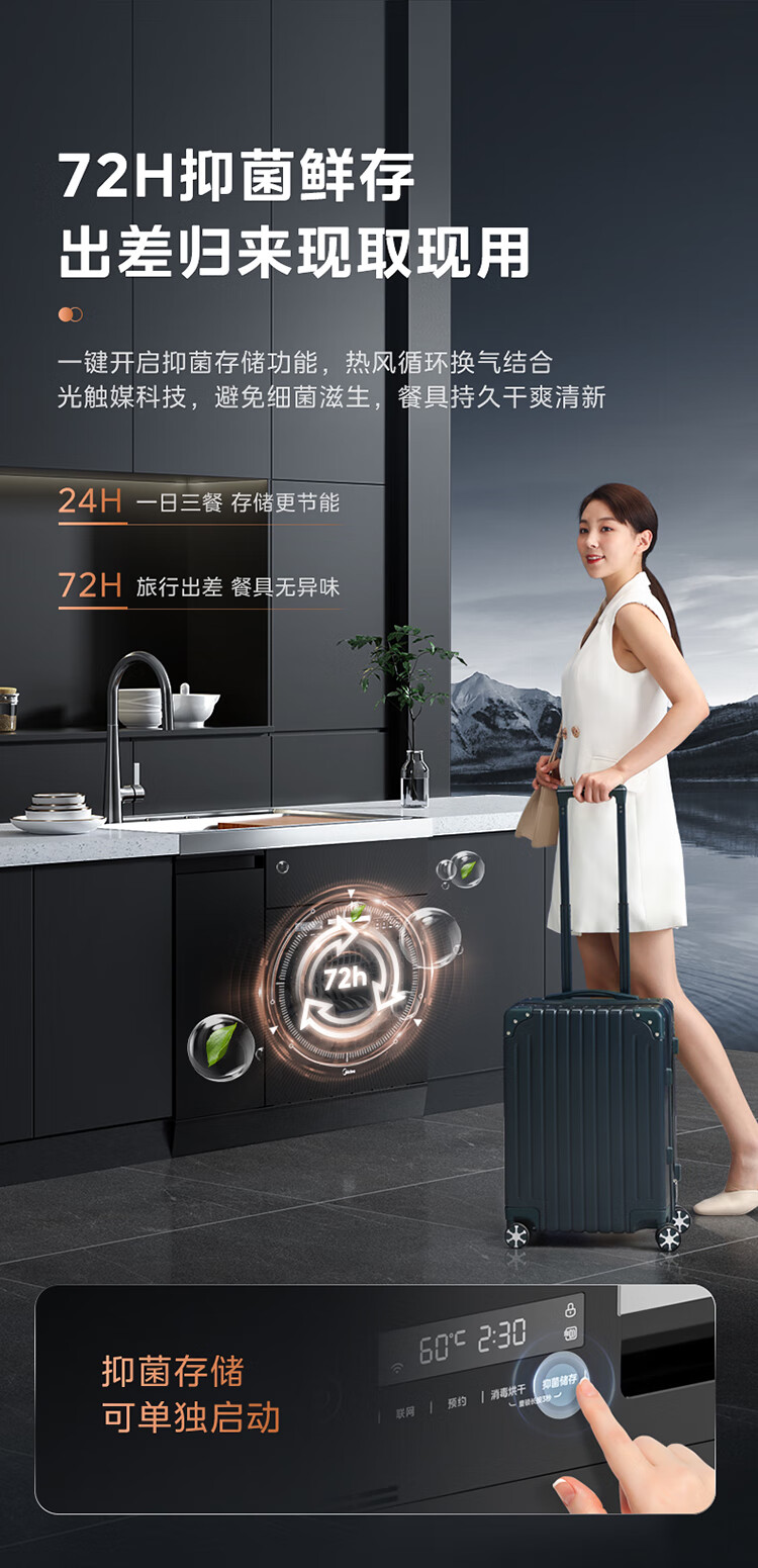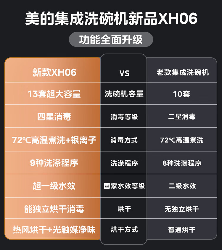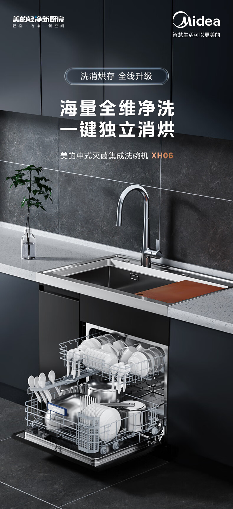 美的(Midea)13套集成洗碗机XH06 集成水槽洗碗机一体式 超一级水效 除菌率高达99.99% 光触媒净味