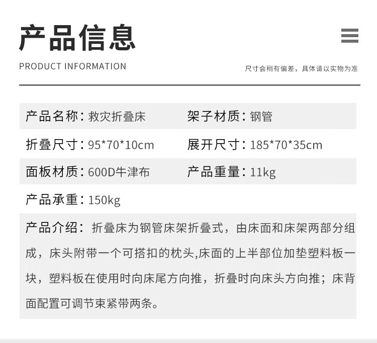 荣兵救灾床 应急救灾救援便捷式简易折叠床 蓝色牛津布185×70×35CM