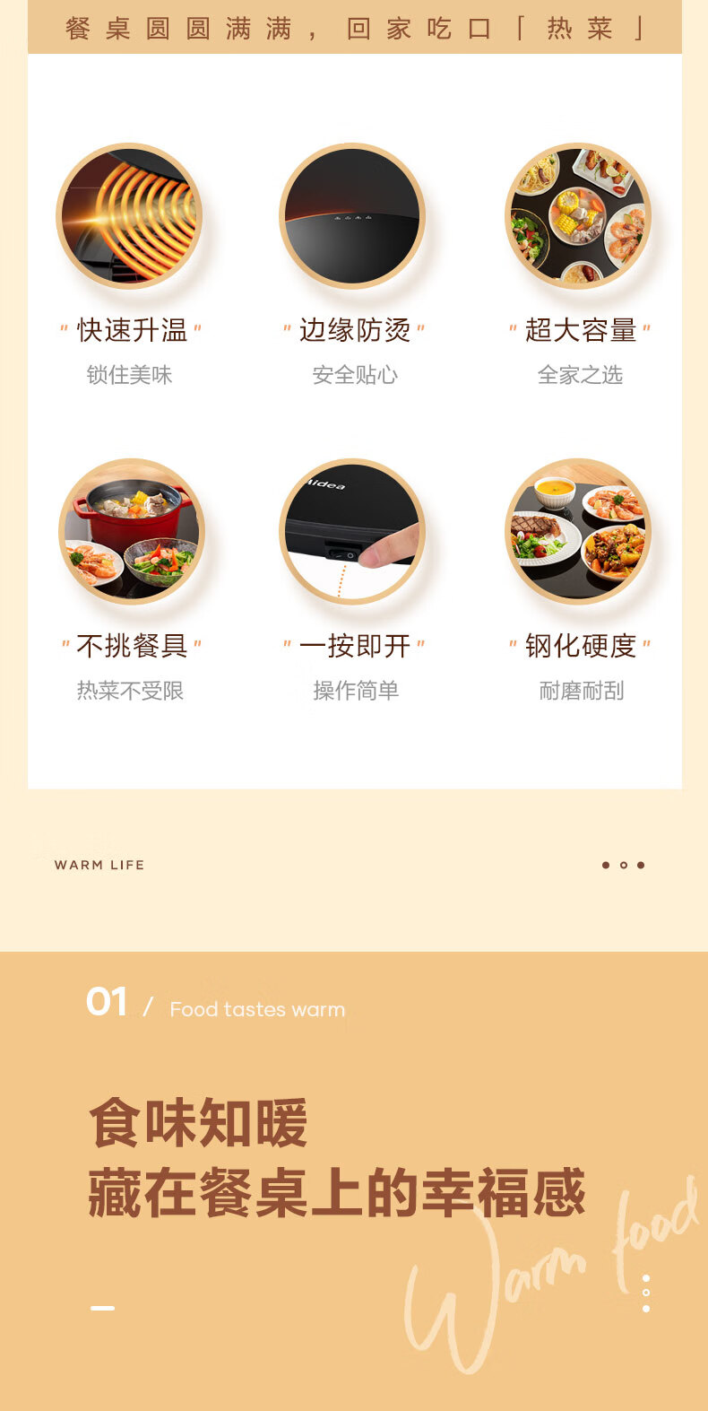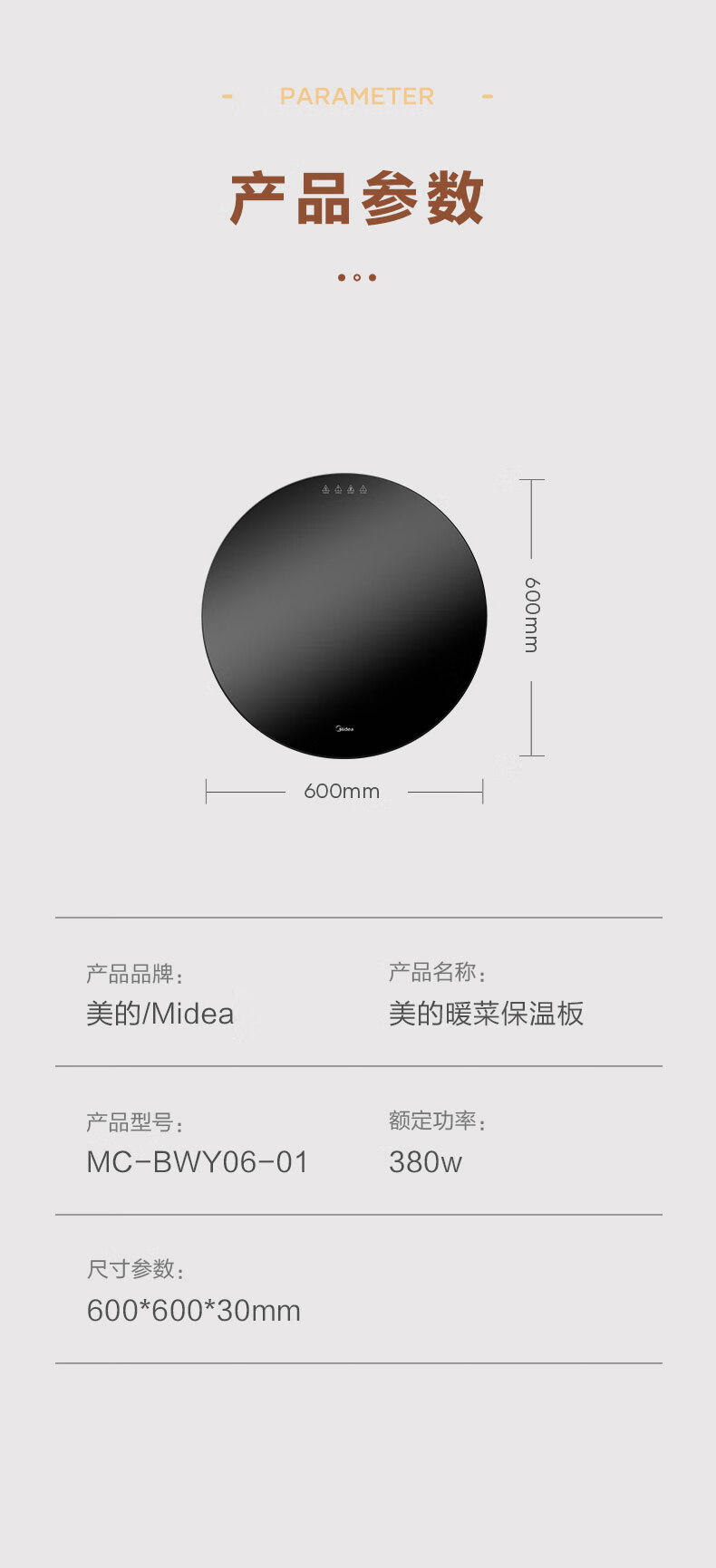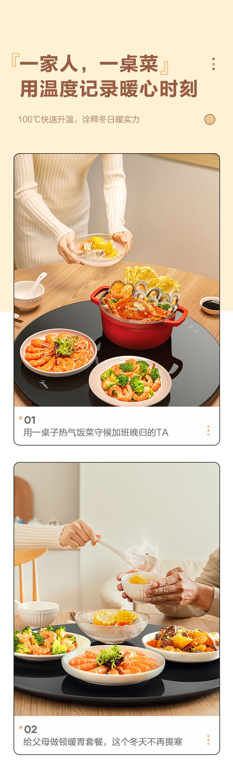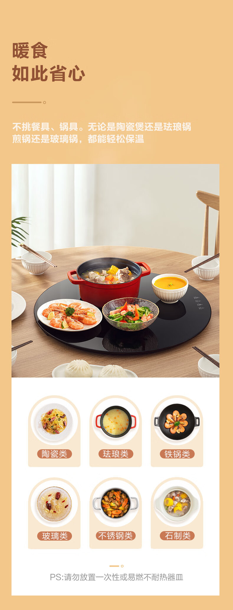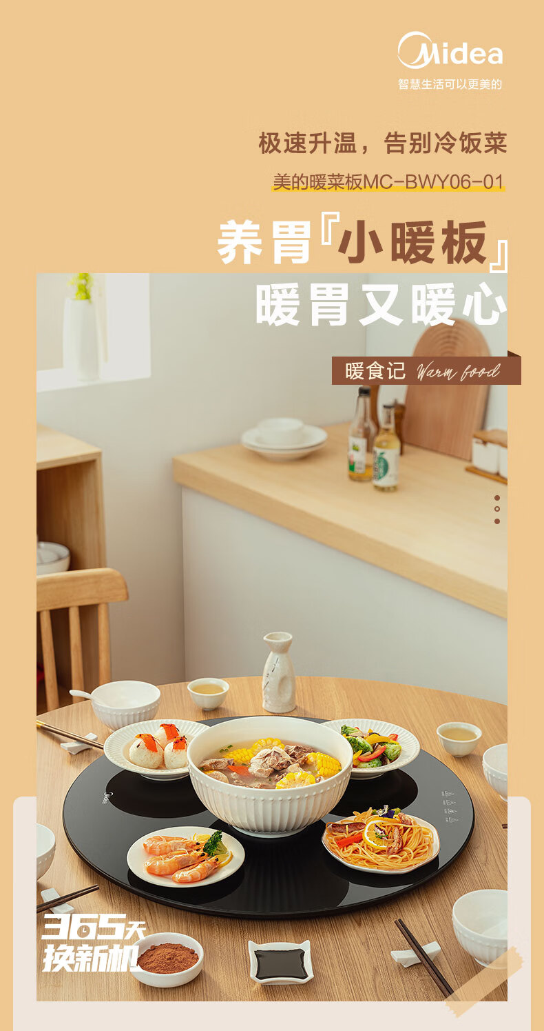 美的(Midea)暖菜板热菜板保温板热菜板加热菜板饭菜保温板热菜神器 MC-BWY06-01