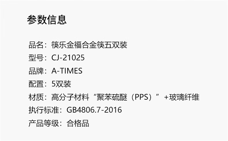 A-TIMES 筷乐金福合金筷五双装 CJ-21025