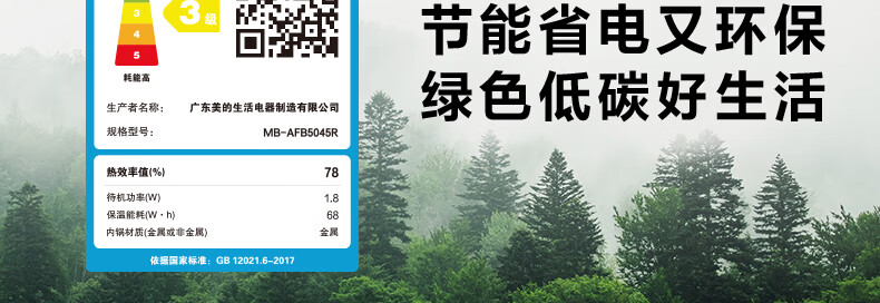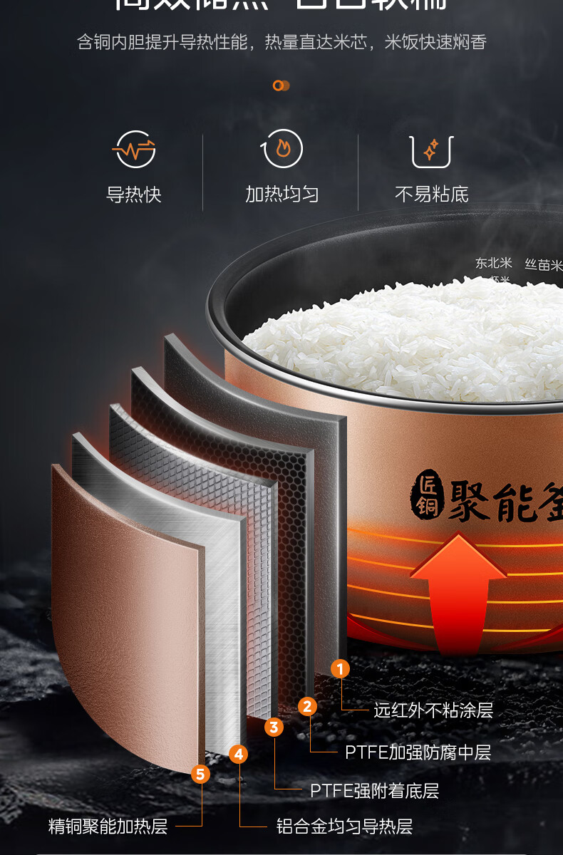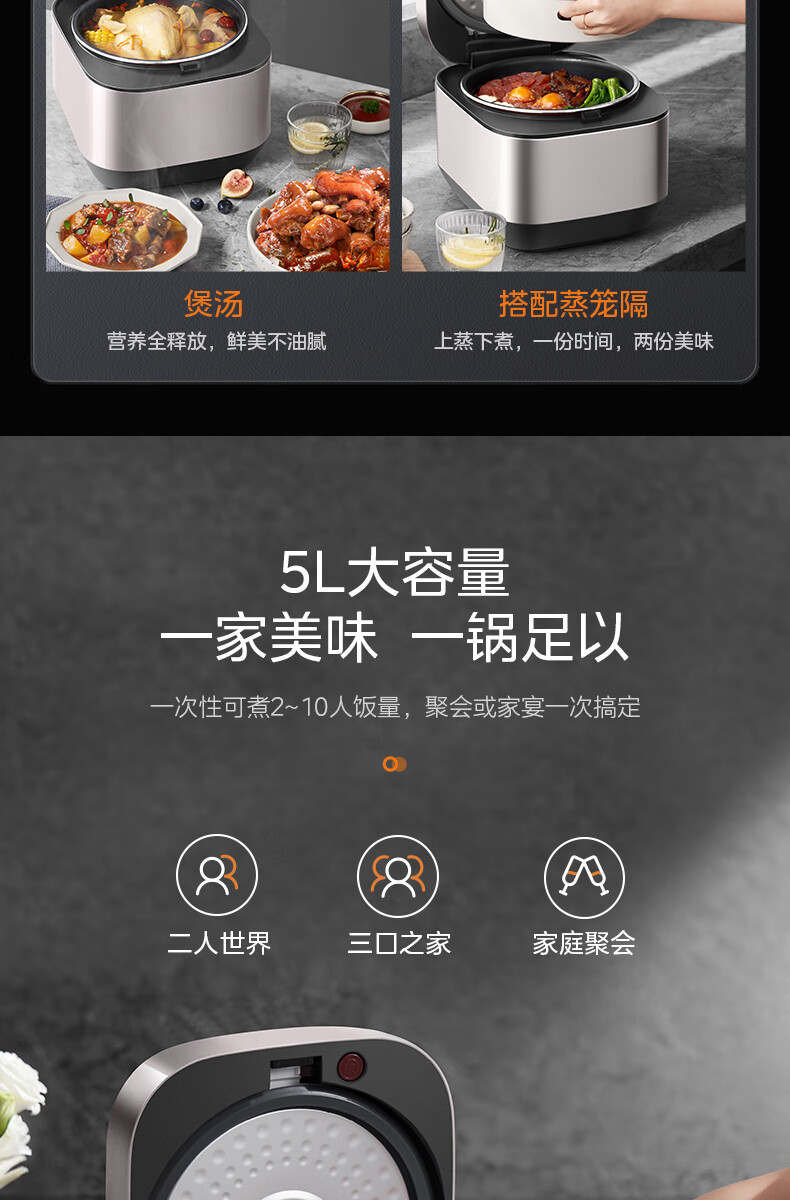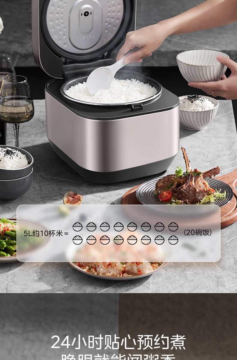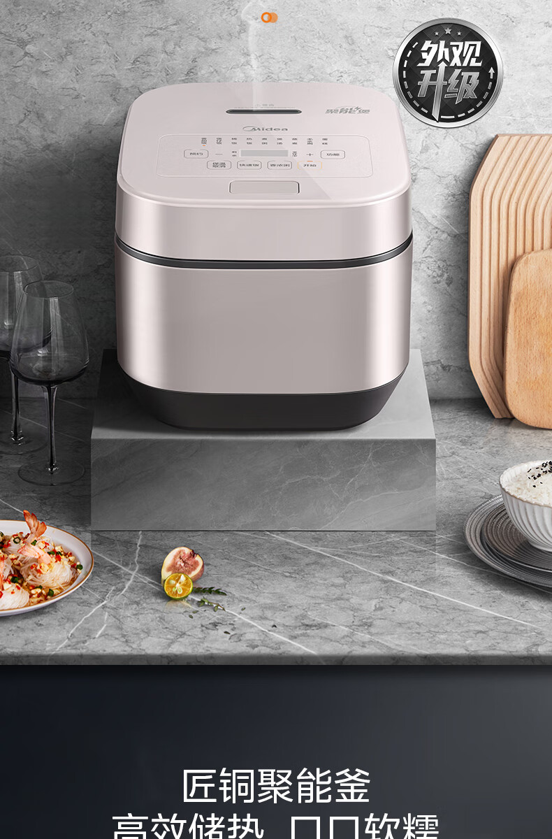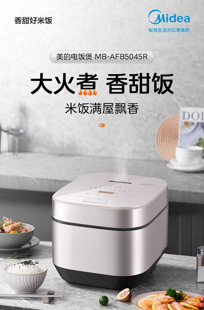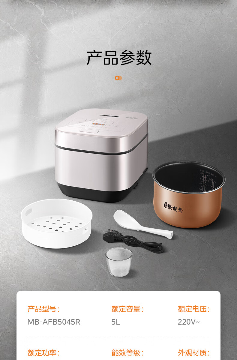 美的(Midea)智能电饭煲电饭锅5升大容量匠铜聚能釜无水焗蛋糕24小时预约定时可拆洗上盖AFB5045R(线下同款)