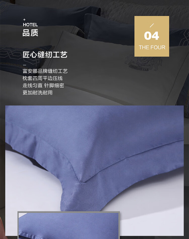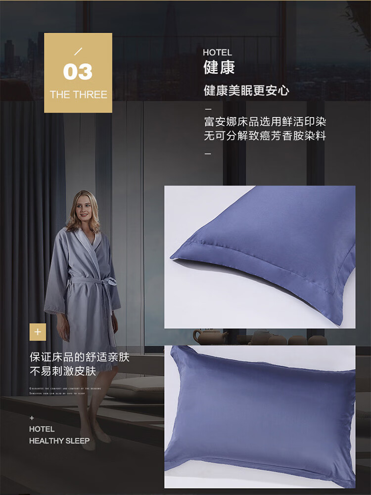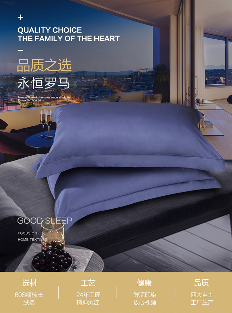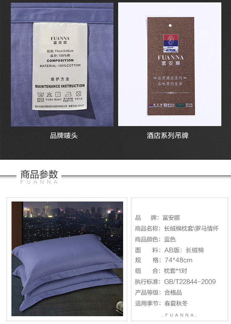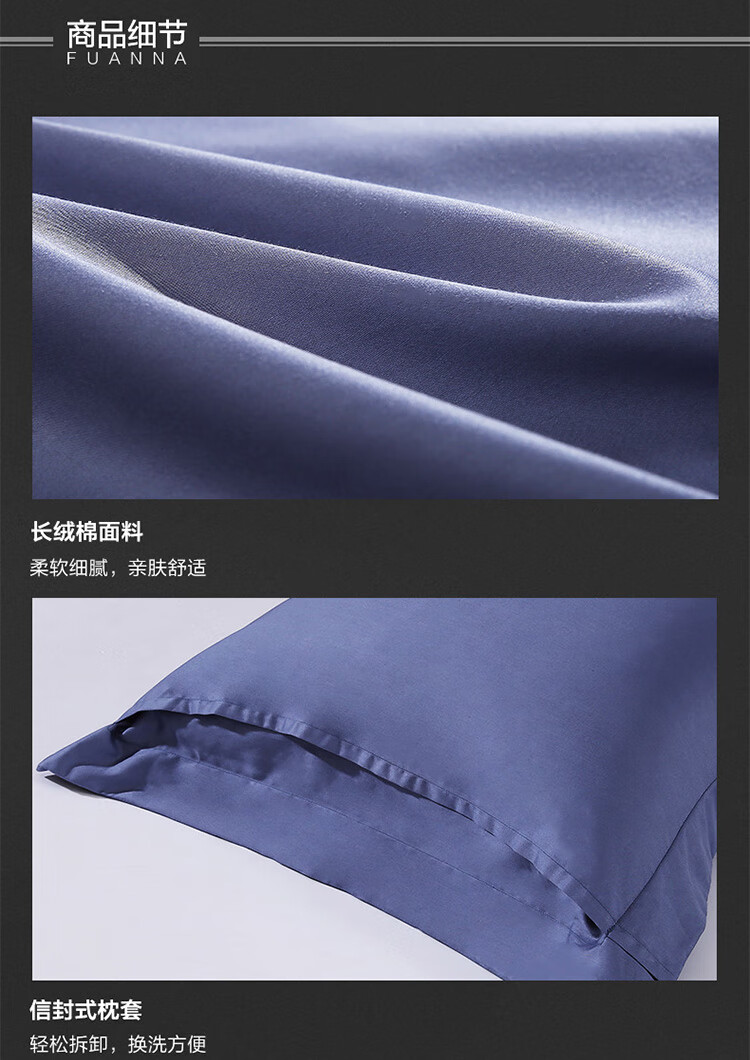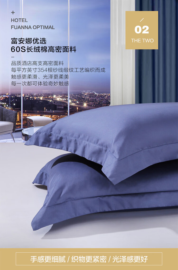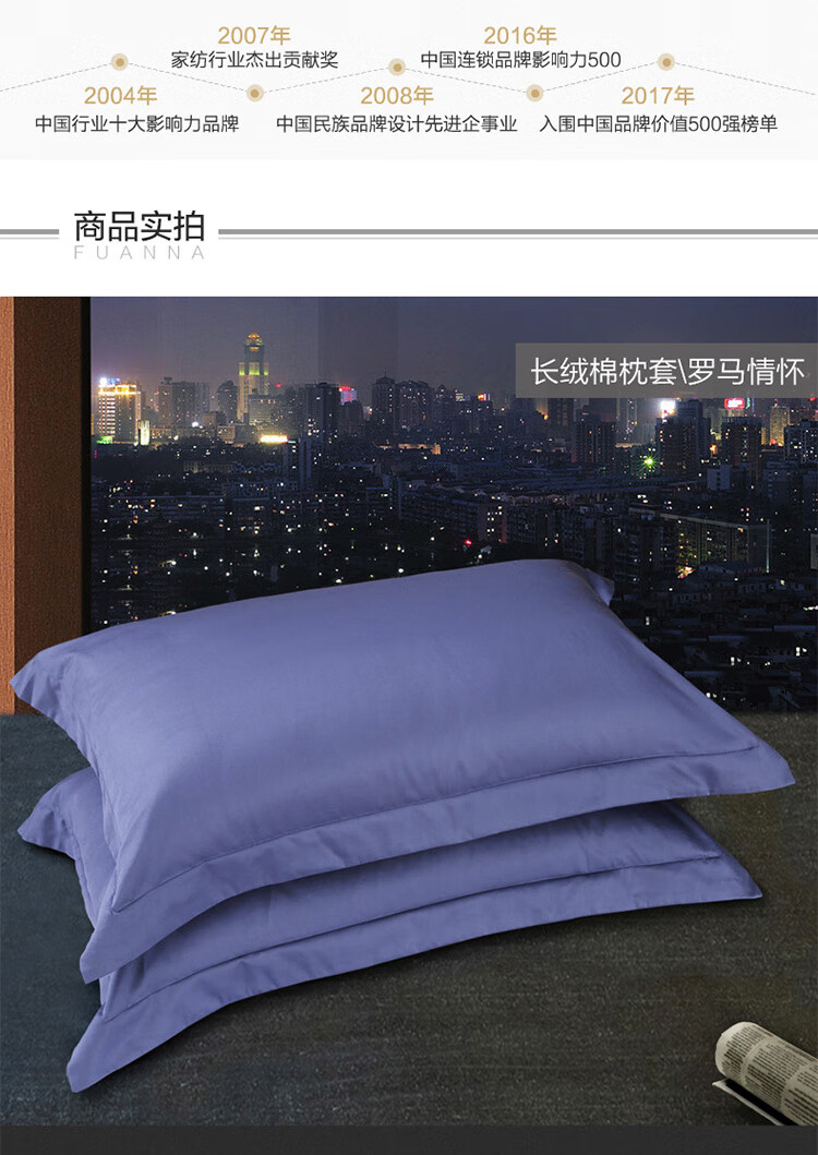 富安娜家纺 枕套纯棉60S长绒棉简约纯色枕头套 全棉高支高密枕巾 一对装 罗马情怀 蓝色74*48cm