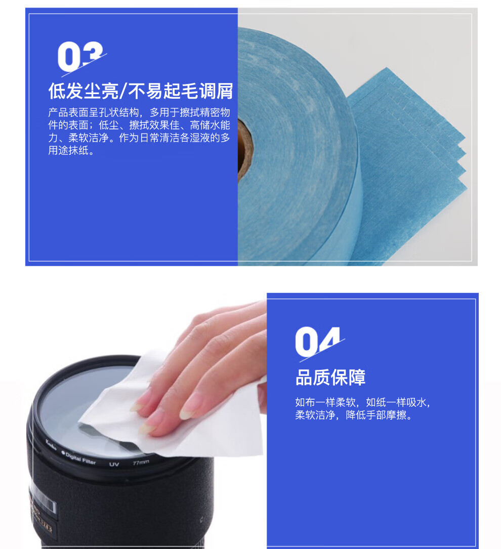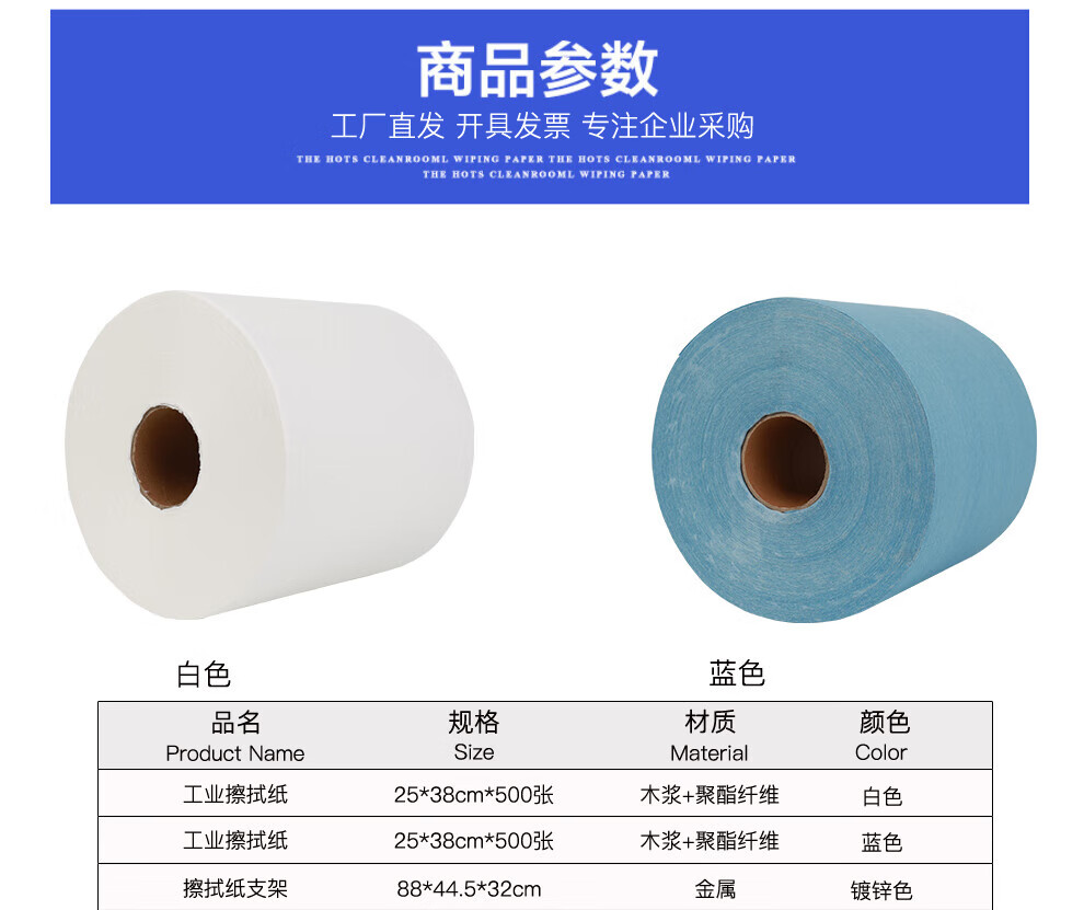 KEERNY无尘清洁纸纸除尘纸吸油纸卷筒工业清洁拭纸 25*38cm*500张 白色