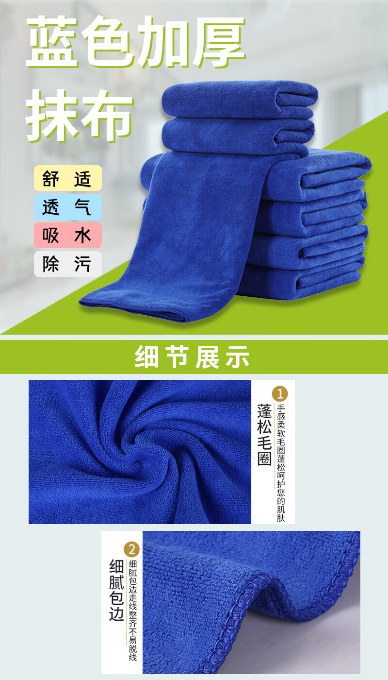 洁丽雅毛巾蓝色清洁加厚耐用厨房洗车抹布30X70