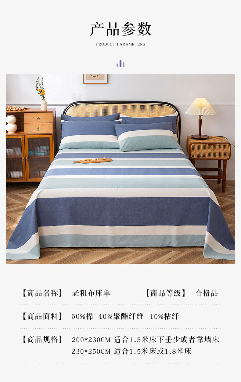 洁丽雅(Grace)床单 加厚老粗布床单夏季双人被单单件1.5/1.8米床 200*230cm清欢