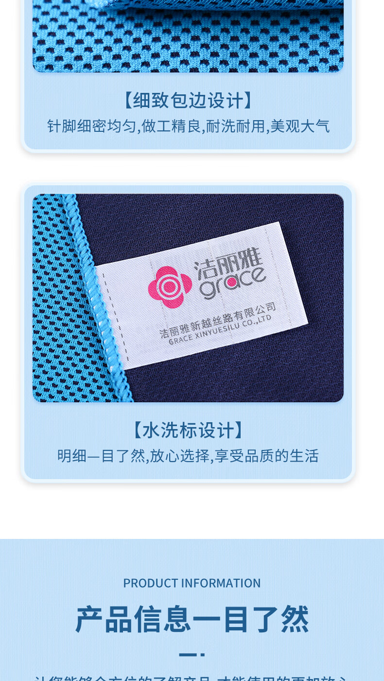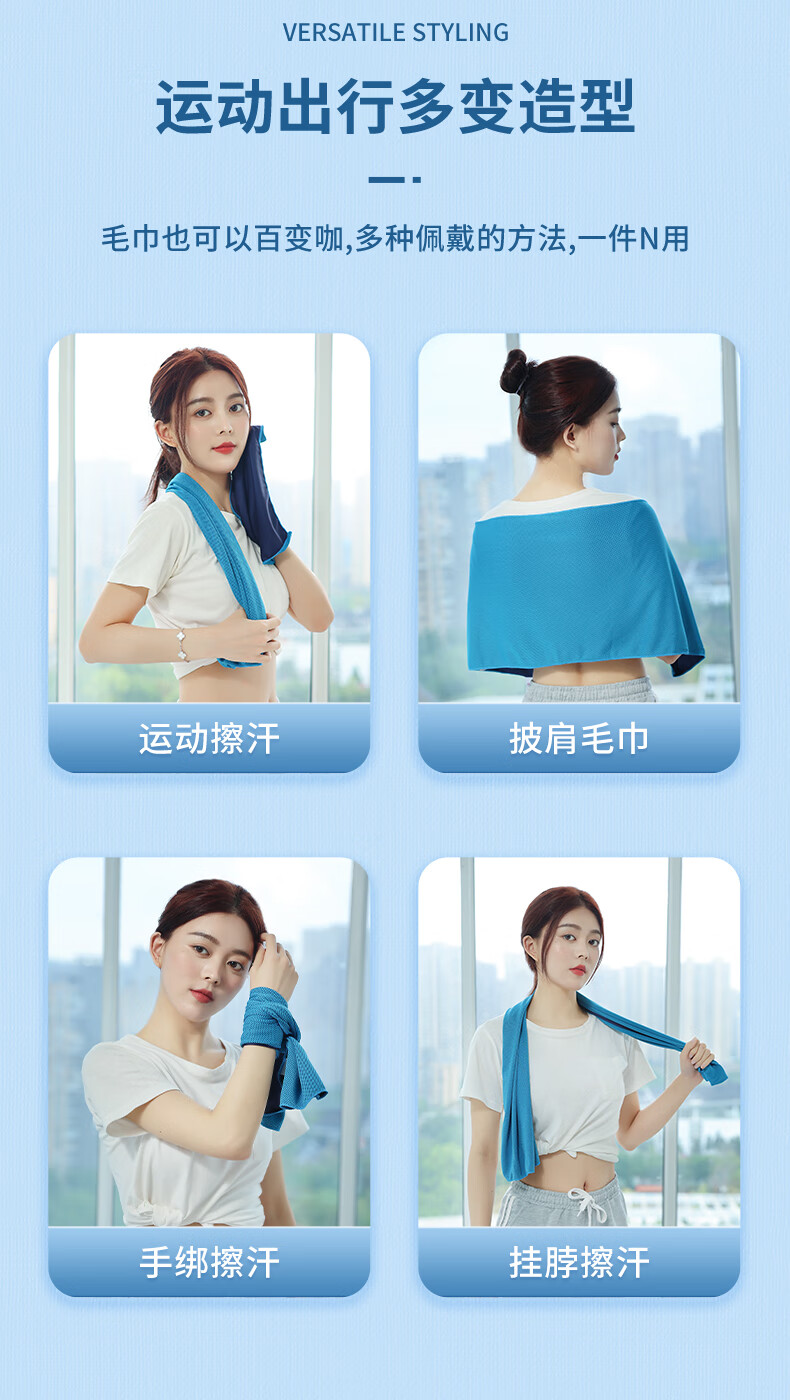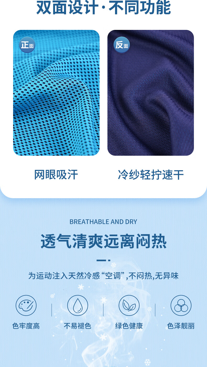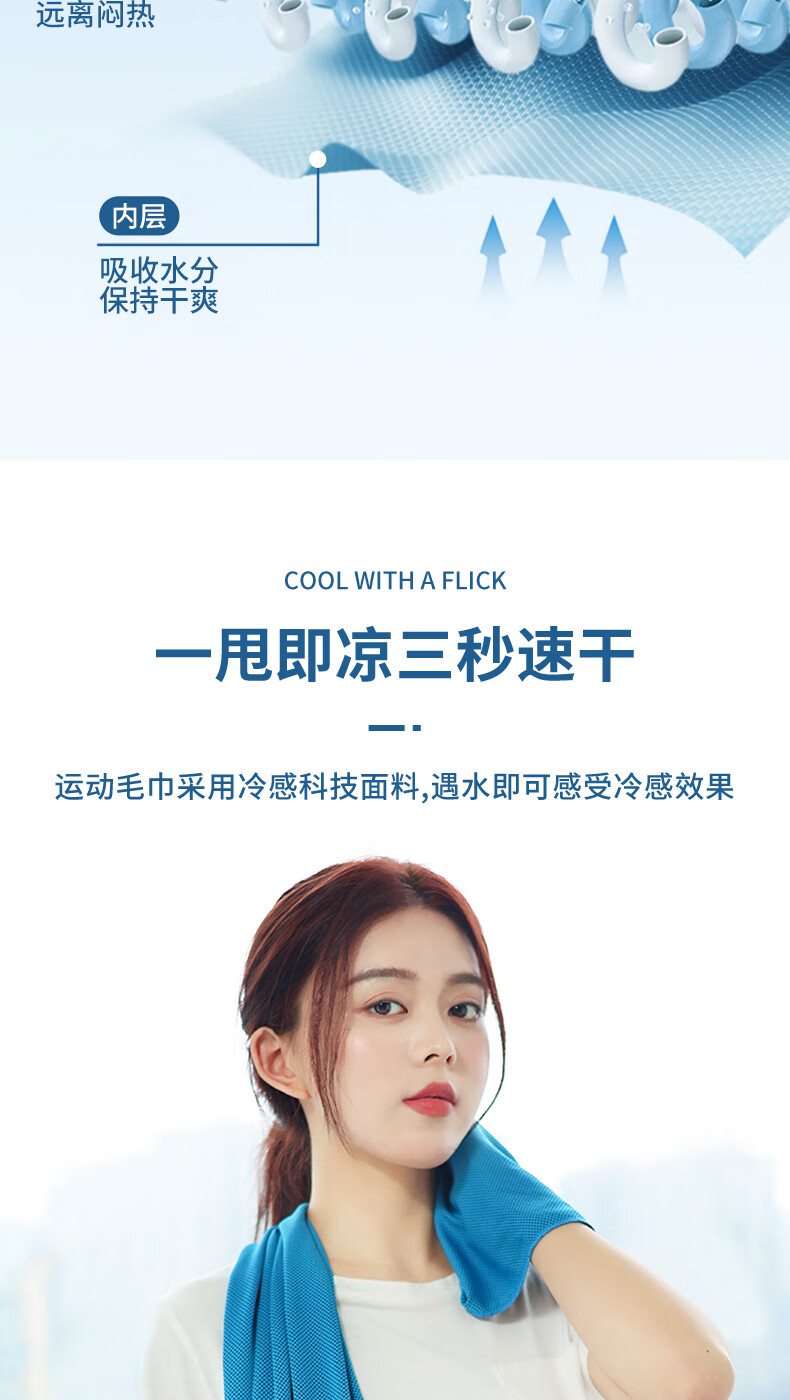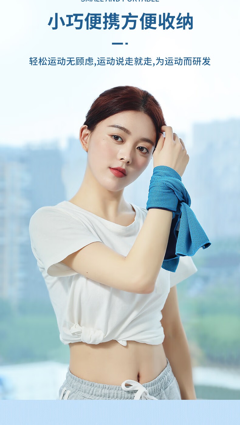 洁丽雅(Grace)凉感运动毛巾健身房男女成人速干吸汗跑步手腕面巾 蓝色 100*30cm