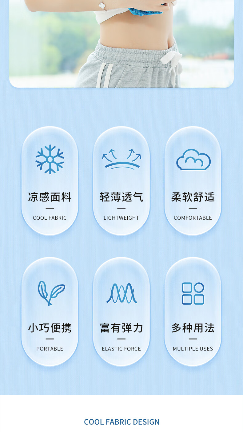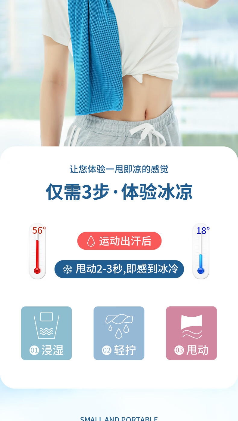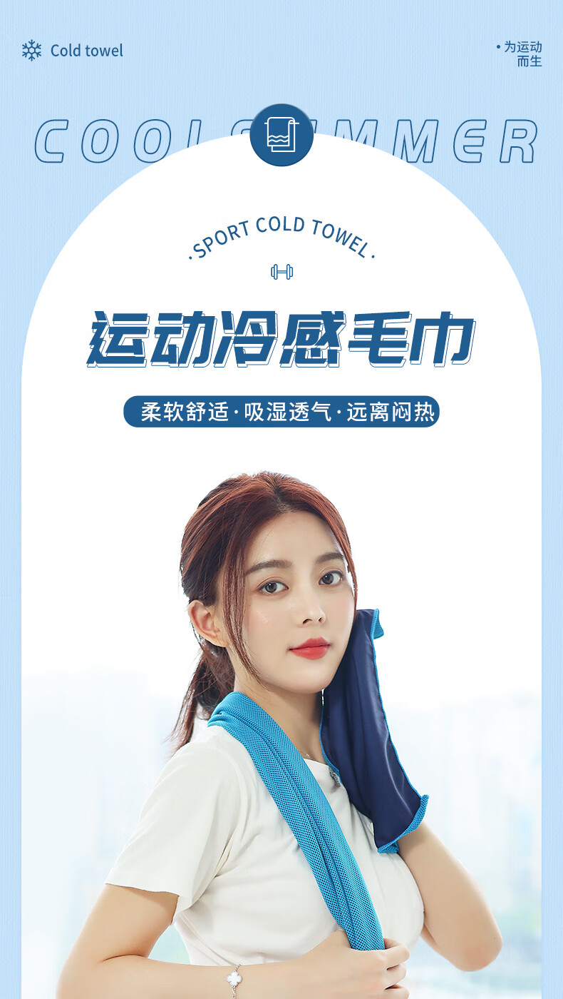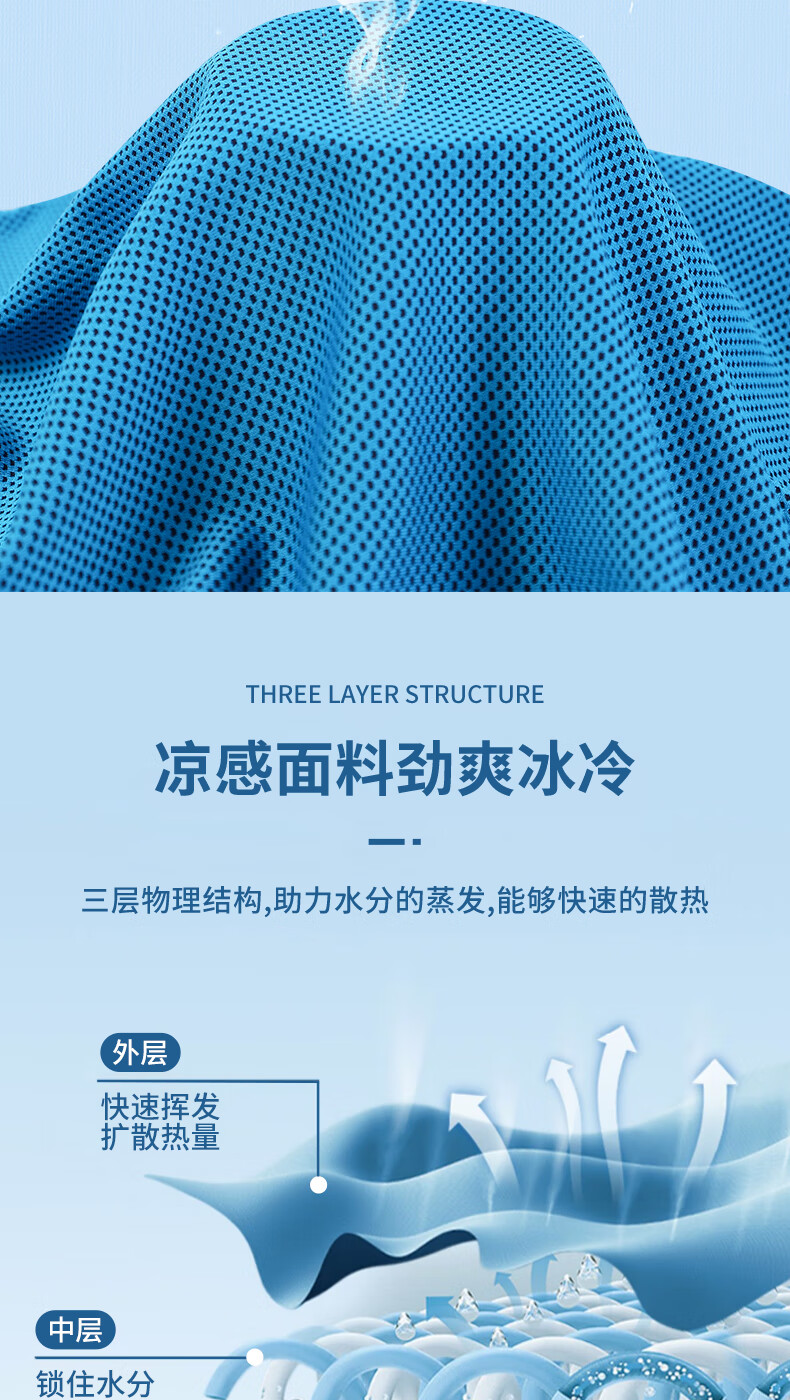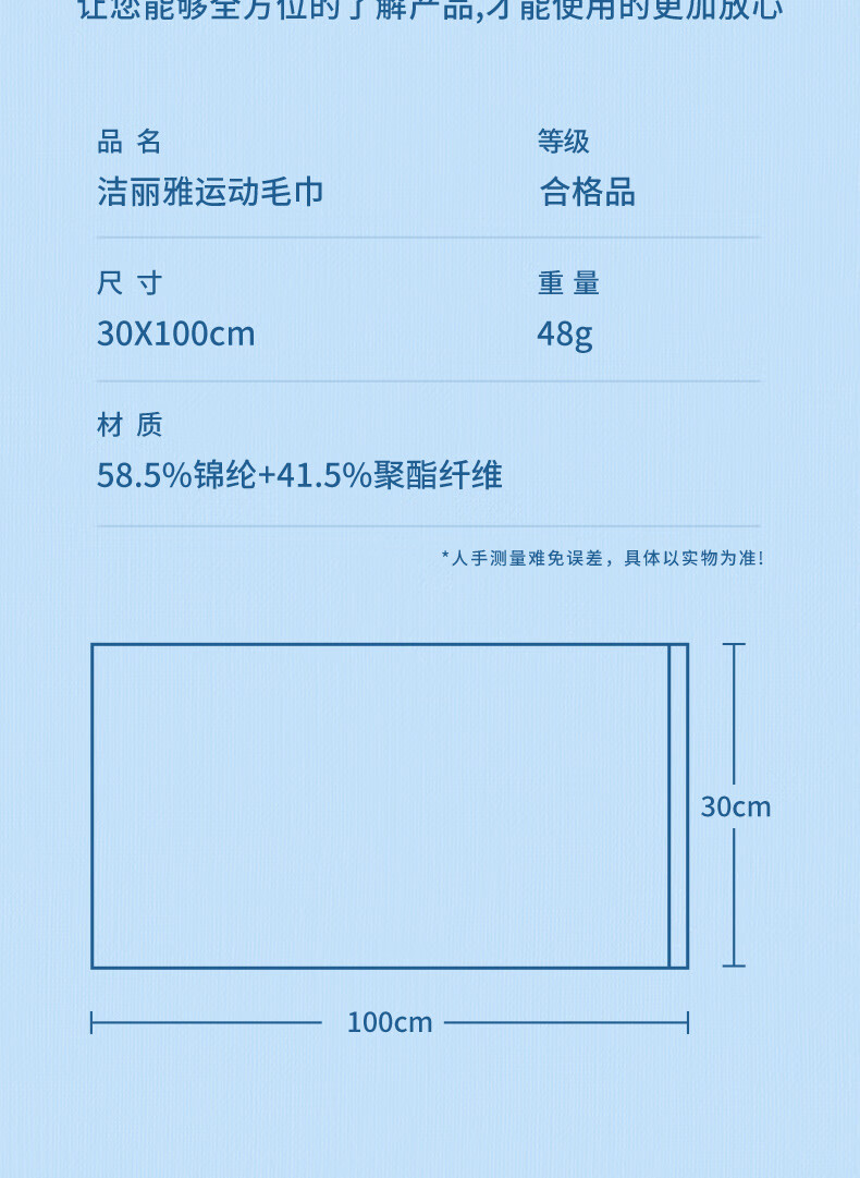 洁丽雅(Grace)凉感运动毛巾健身房男女成人速干吸汗跑步手腕面巾 蓝色 100*30cm
