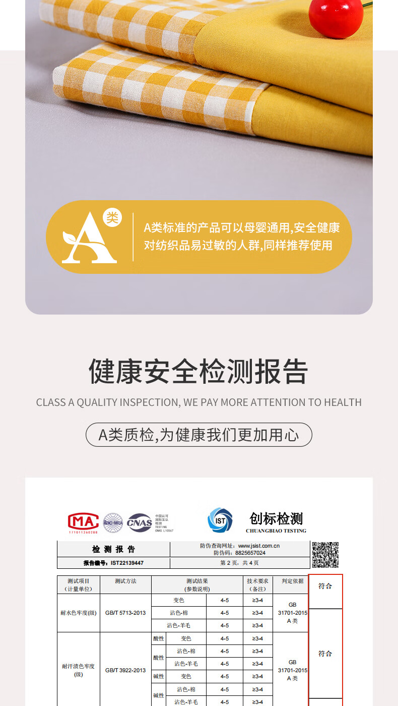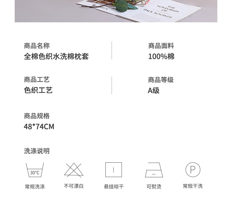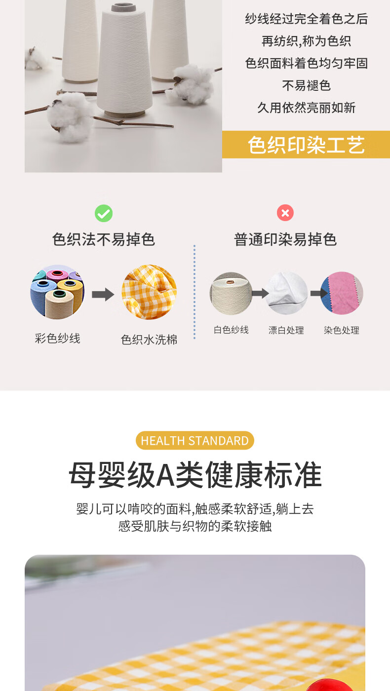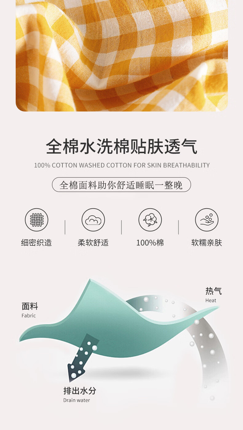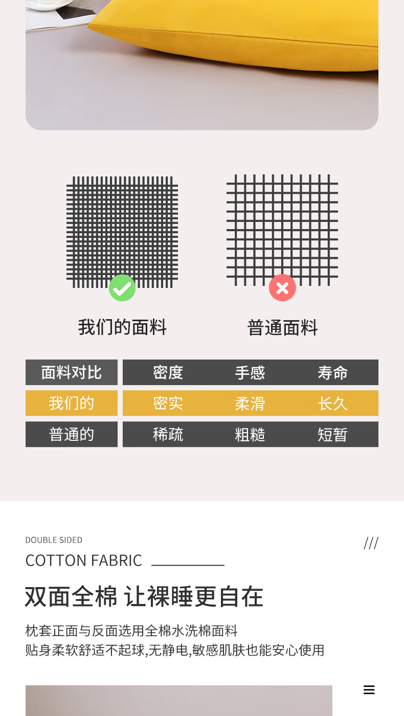 洁丽雅(Grace)全棉枕套一对装A类纯棉色织水洗棉枕头套宿舍枕芯套48*74cm 蕉黄
