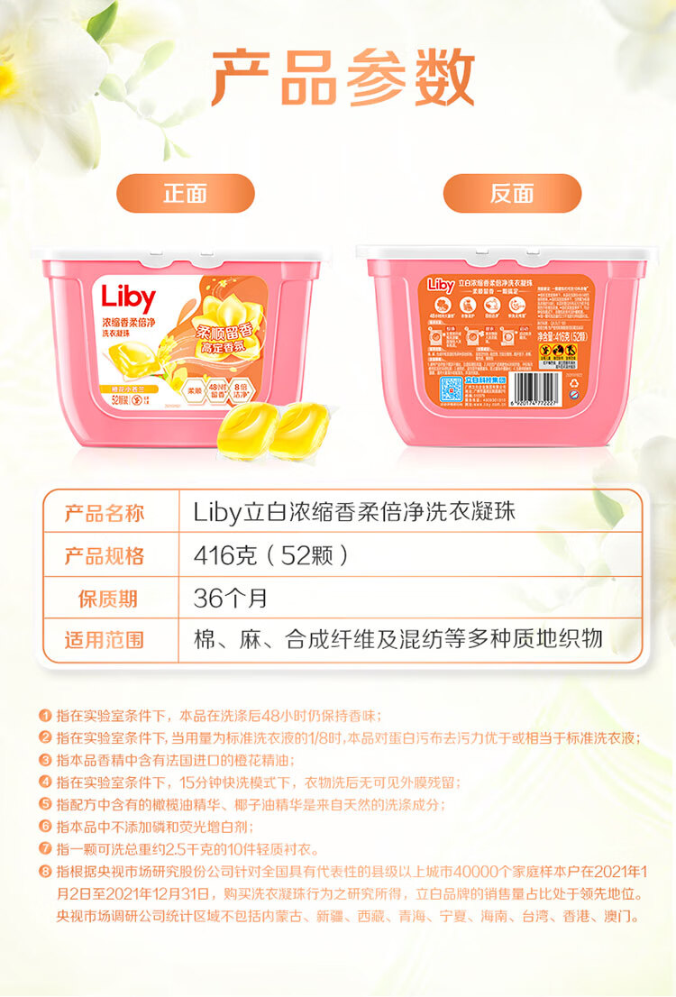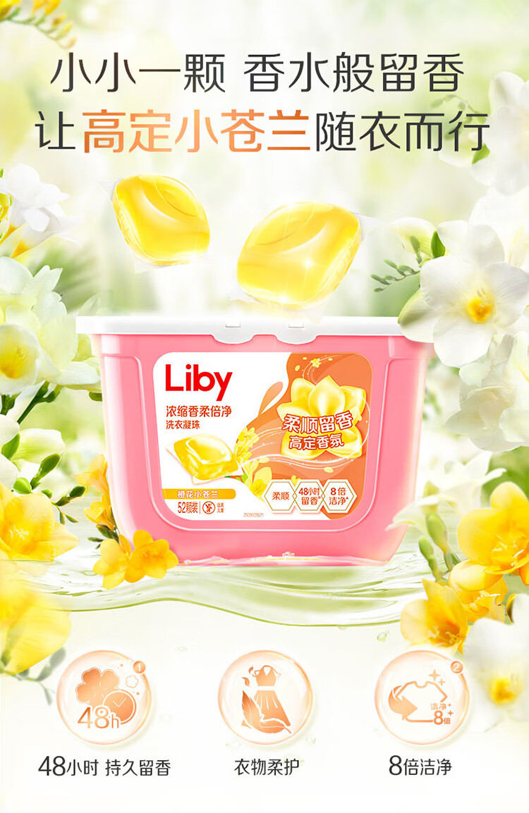 立白洗衣凝珠 小苍兰香氛 持久留香 浓缩洗衣液 洗衣球 52颗