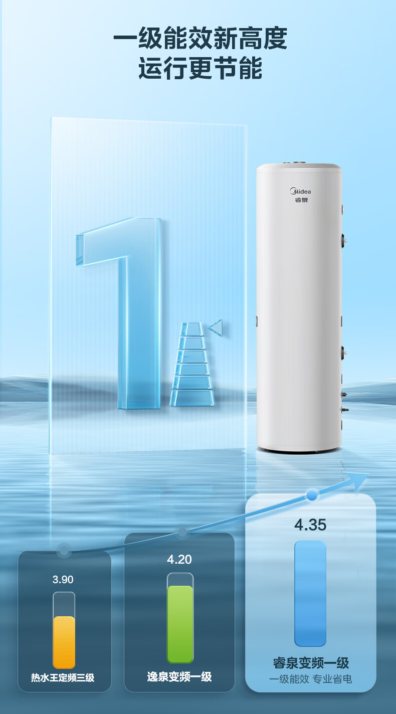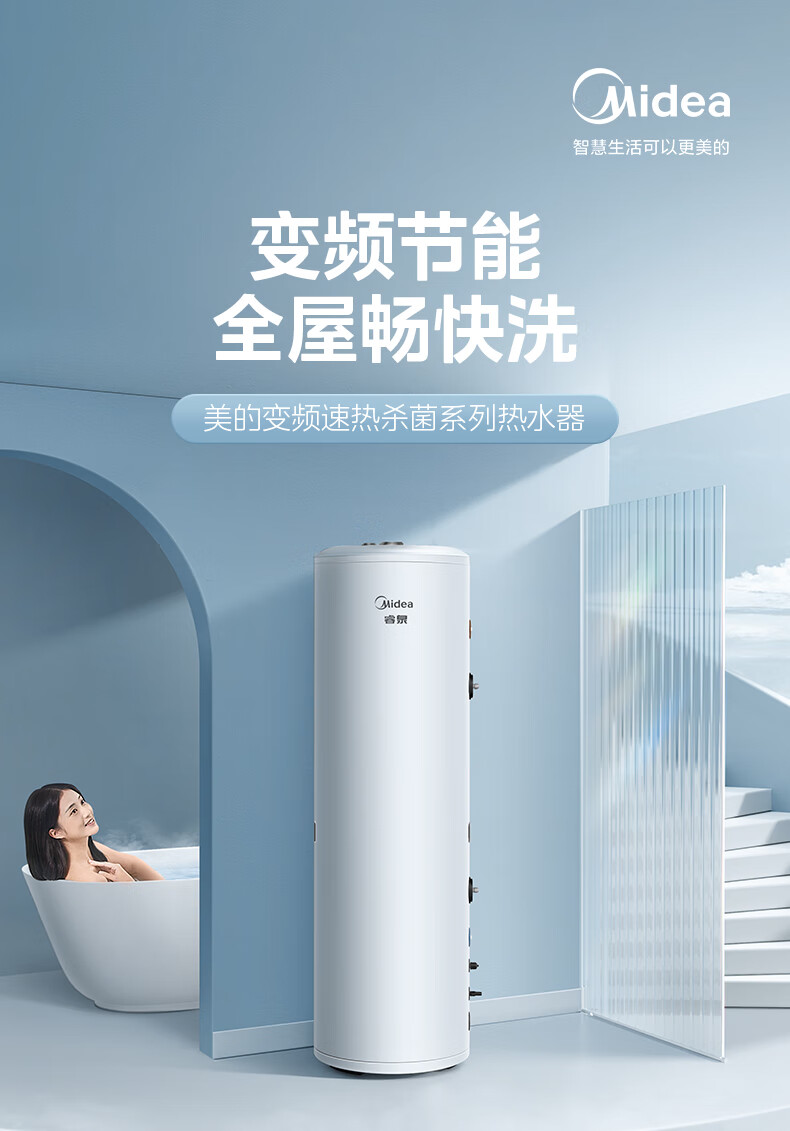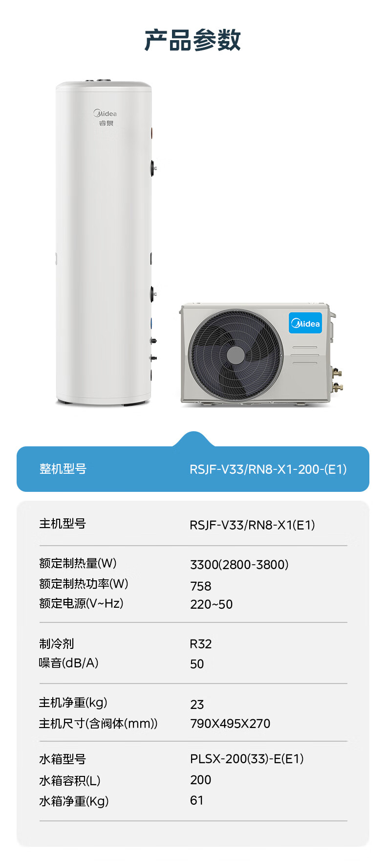 美的(Midea)空气能热水器家用200升一级能效全变频节能WiFi智能E+蓝钻内胆水电分离RSJF-V33/RN8-X1-200-(E1)