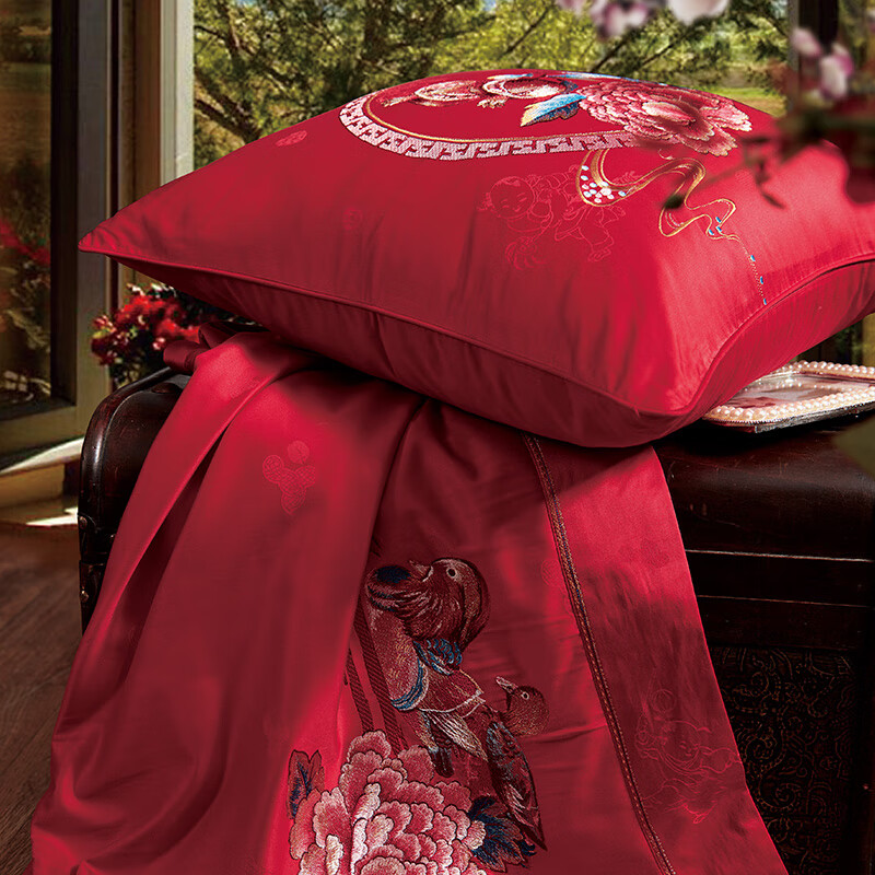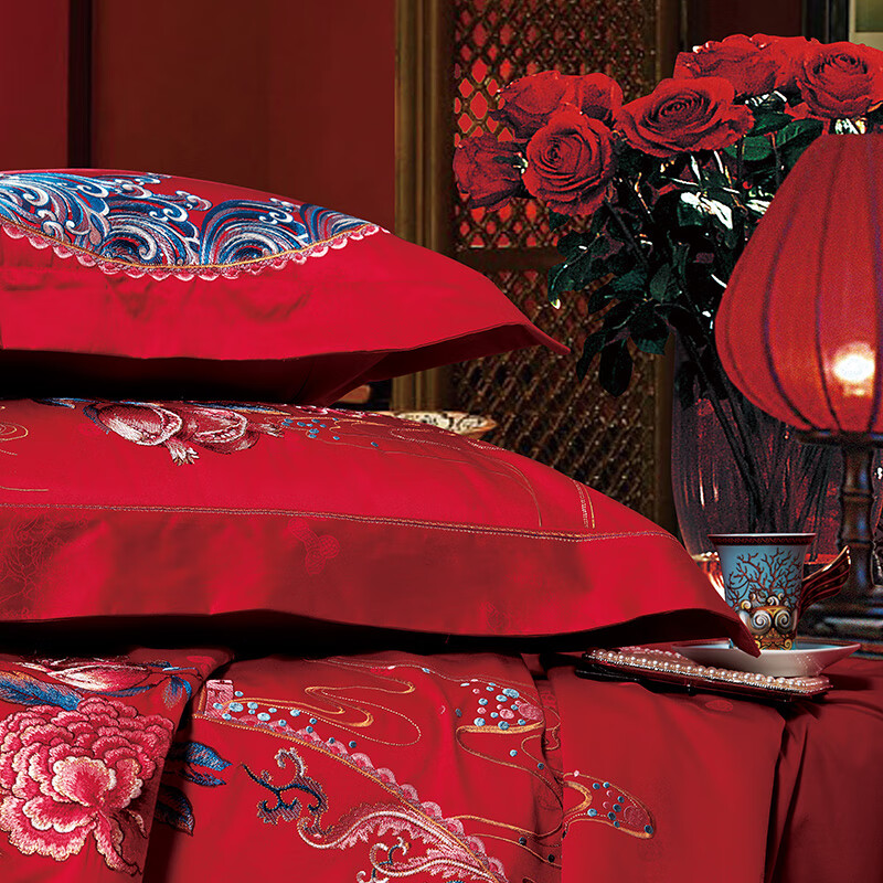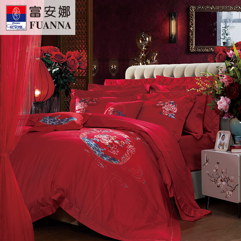 富安娜[线下同款]婚庆床单八件/花前月下1.8m床(230*229cm)