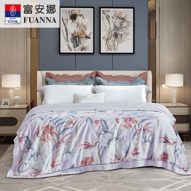 [线下同款]富安娜(FUANNA)莱赛尔印花水洗蚕丝夏被\花叶浮绘1.8m床(230*229cm)