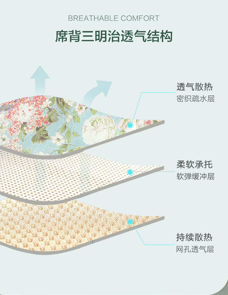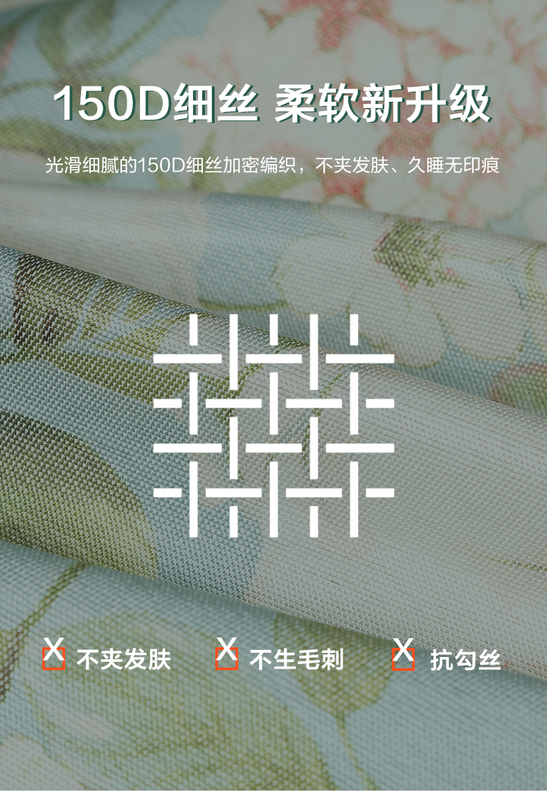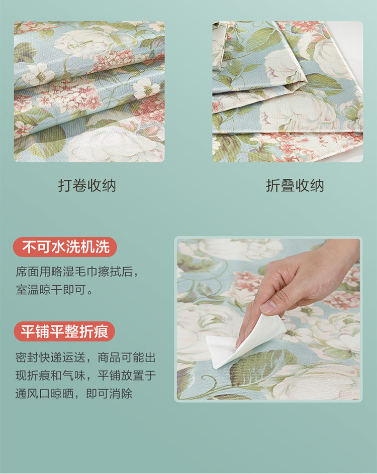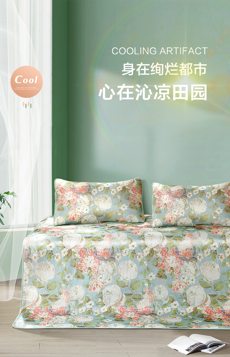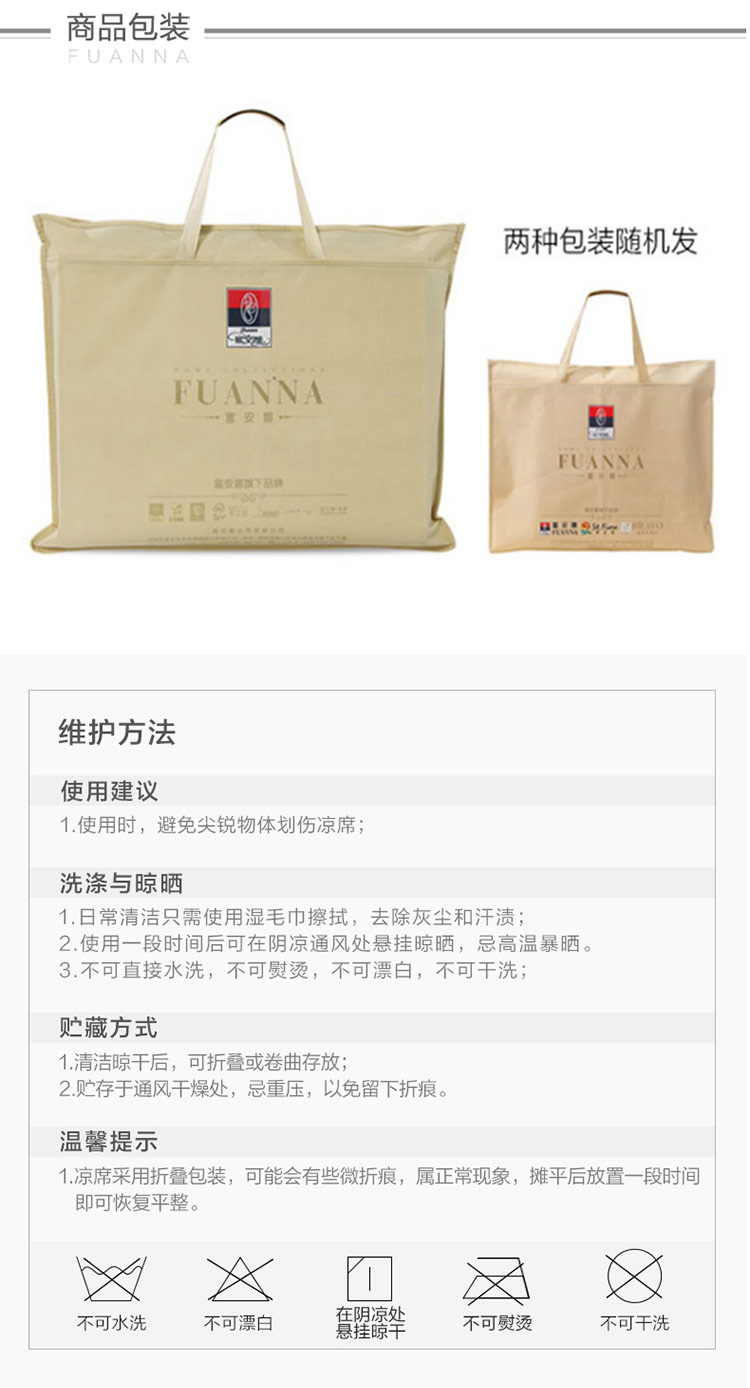 富安娜家纺凉席冰丝席子空调席三件套夏季双人防滑绑带印花席1米8床