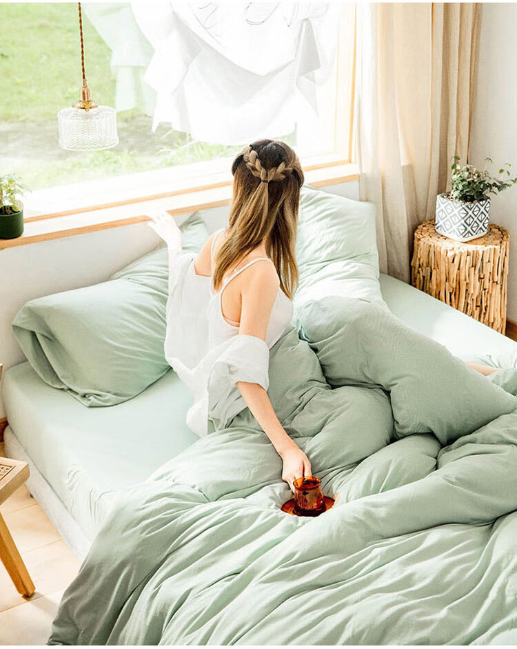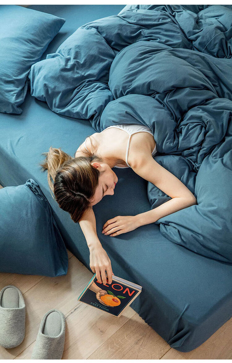 三极户外(Tri-polar)TP2982 居家床上用品天竺棉日式单色床单被罩枕套三件套 1.2米床 床笠款 海蓝色