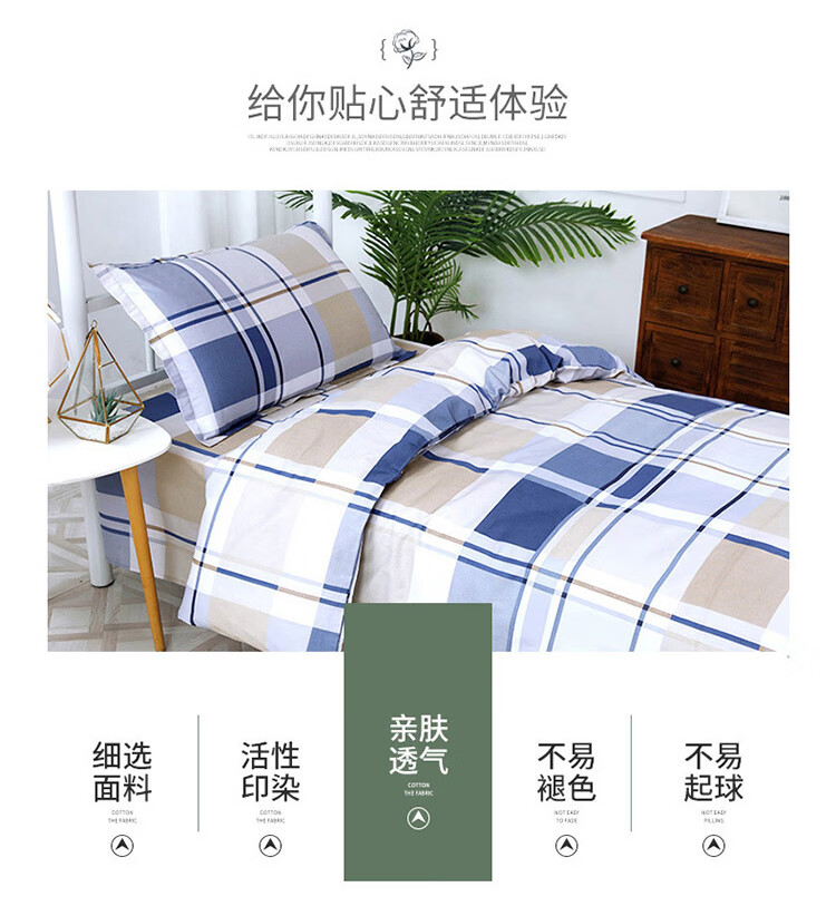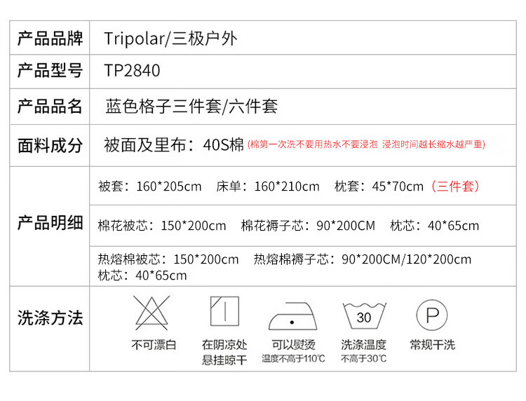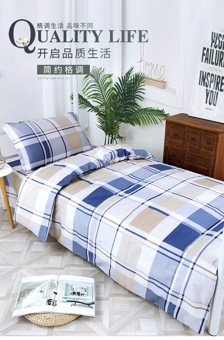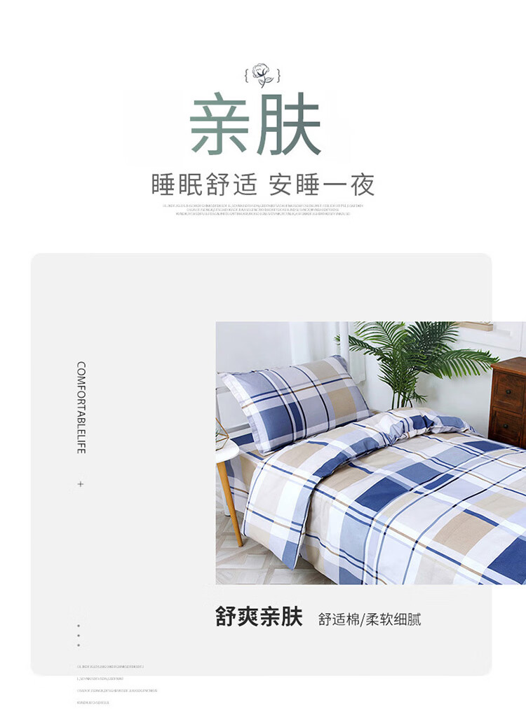 三极户外(Tri-polar) TP2840学生宿舍单人上下铺床上用品床单被罩枕套三件套 160*210cm蓝色格子