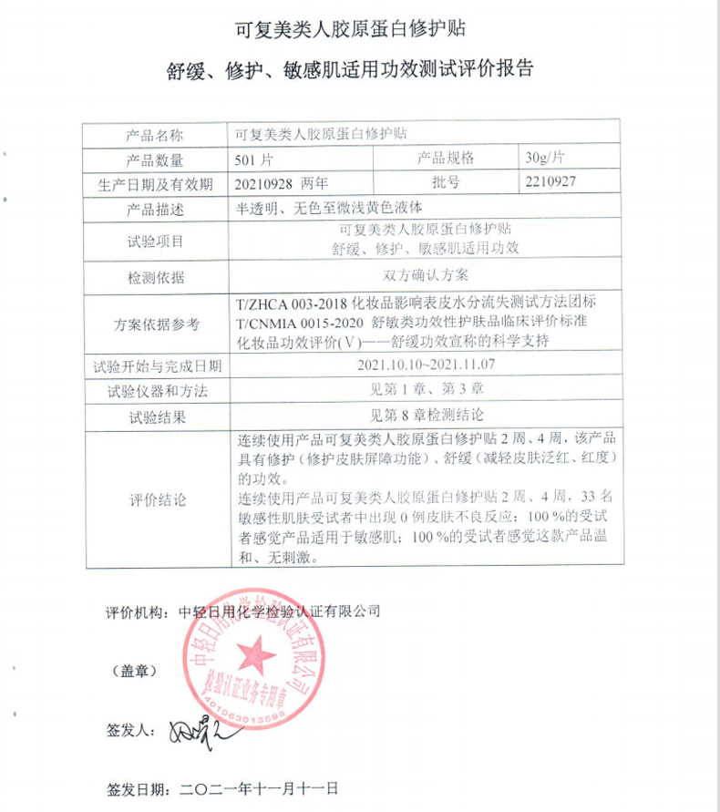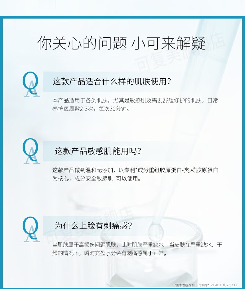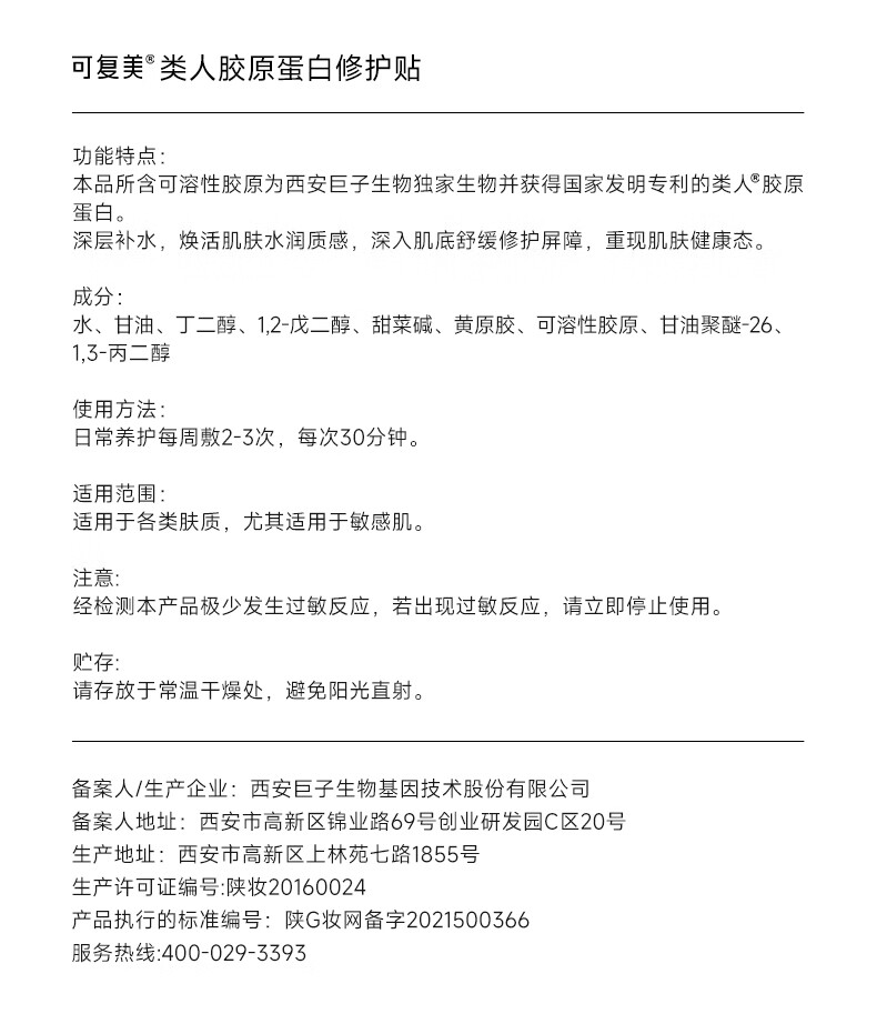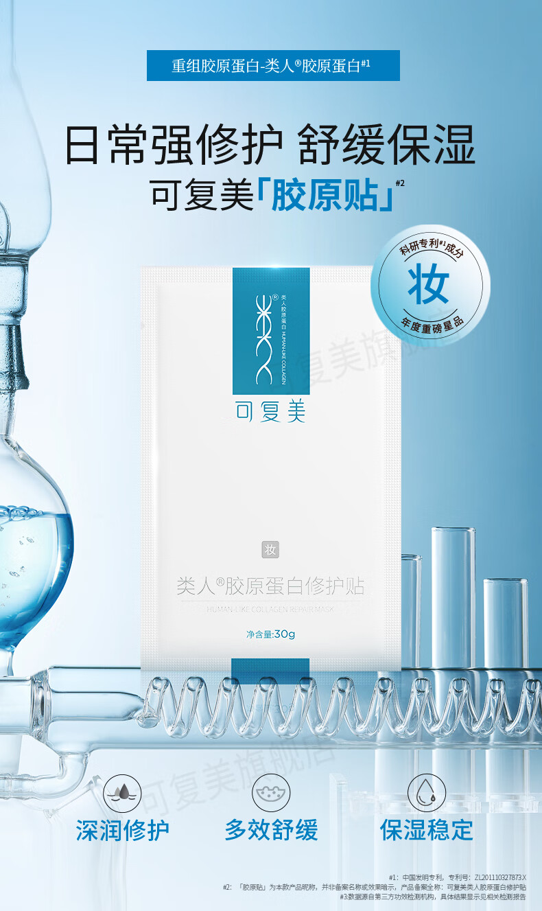 可复美类人胶原蛋白修护贴5片舒缓修护面膜减轻皮肤泛红修护肌肤屏障 可复美胶原贴