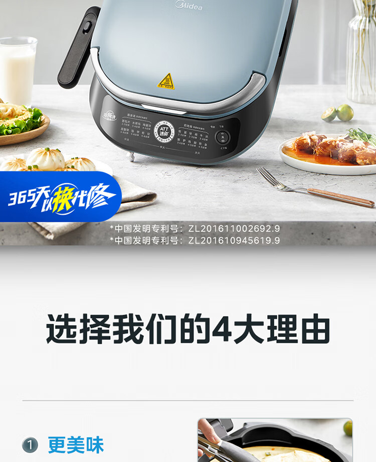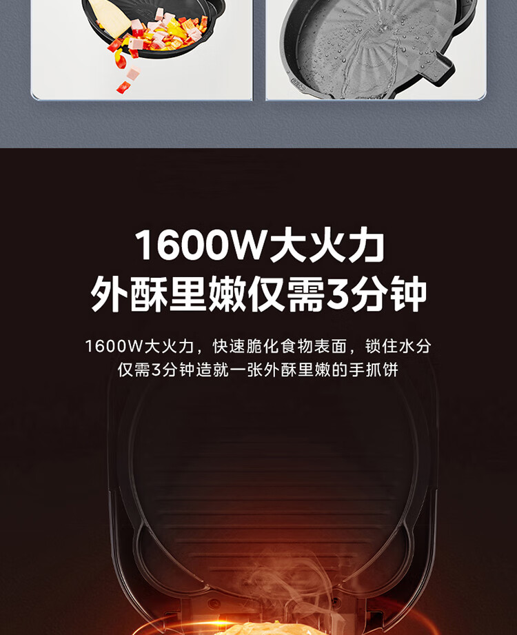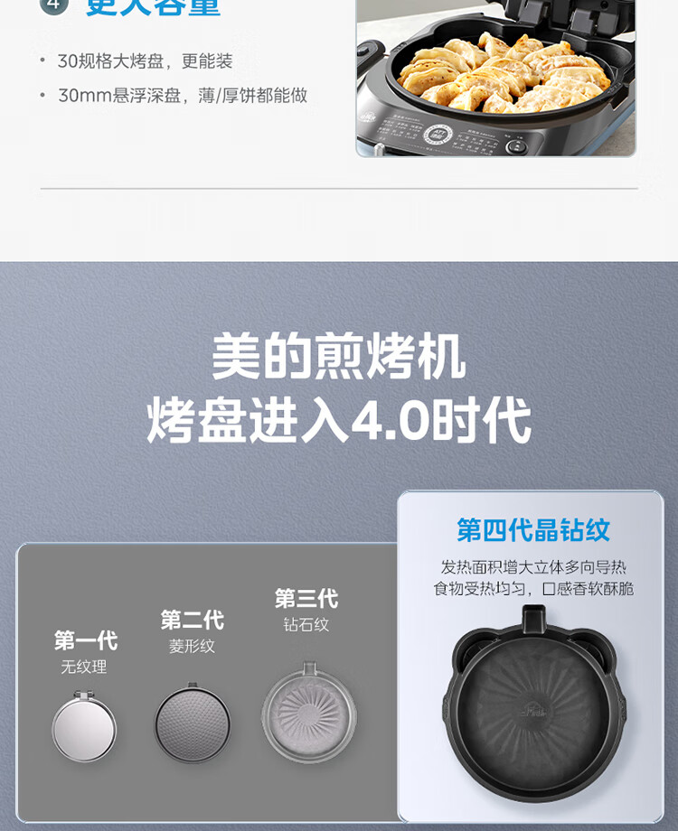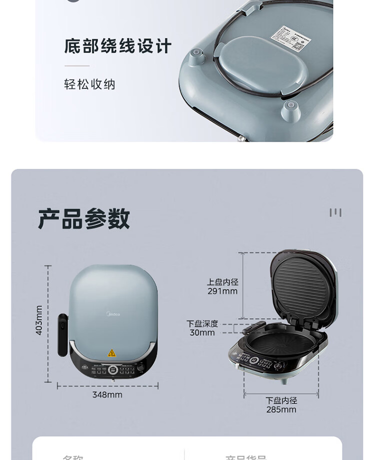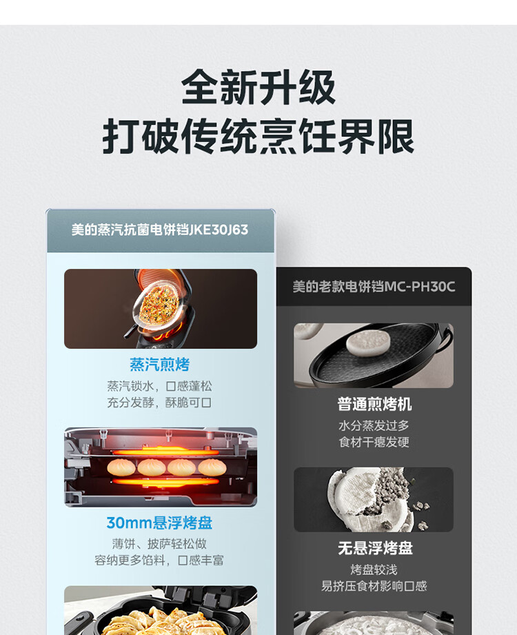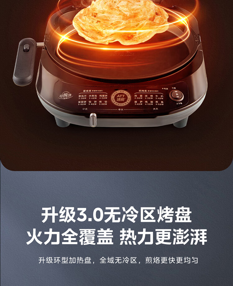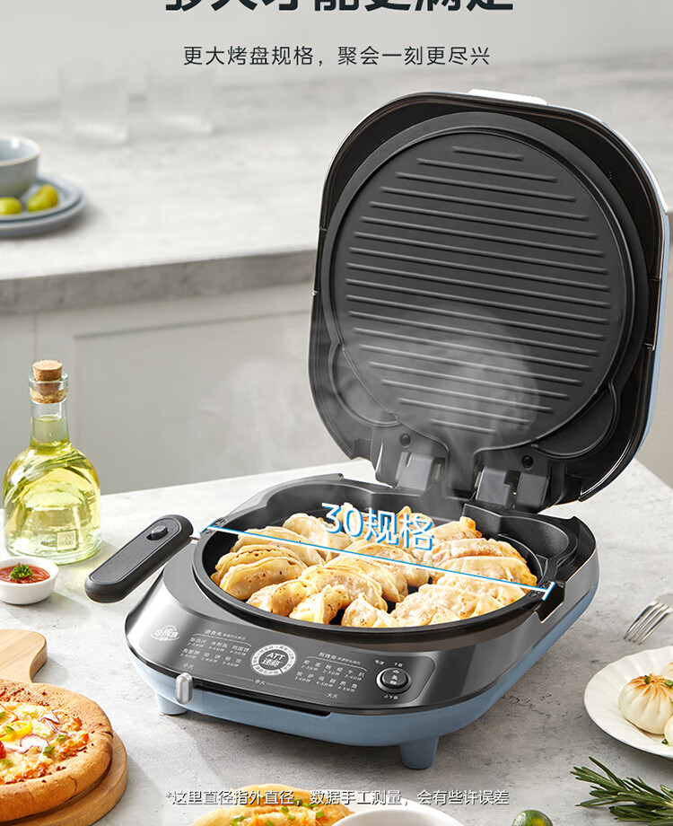 美的(Midea)电饼铛家用双面加热可拆洗煎饼铛煎烤机烙饼锅早餐机30mm加深烤盘滑控火力JKE30J63