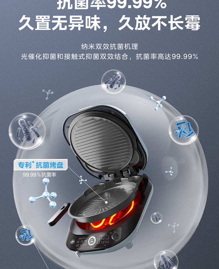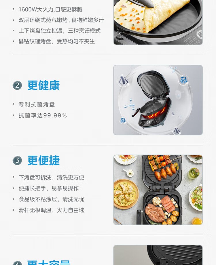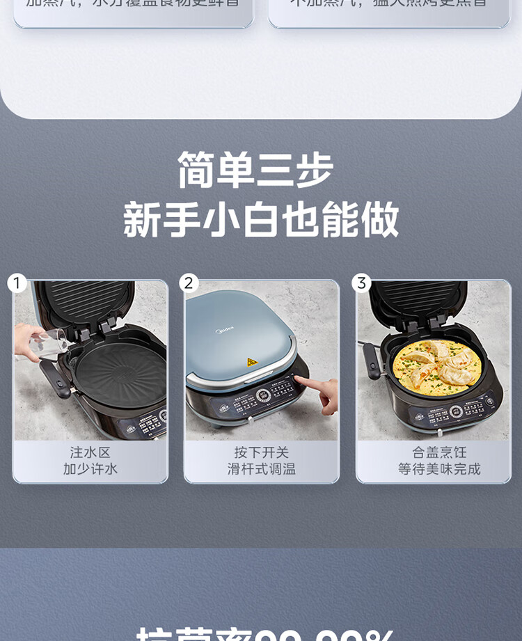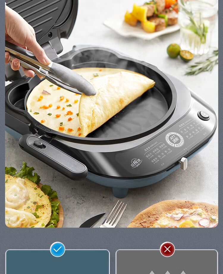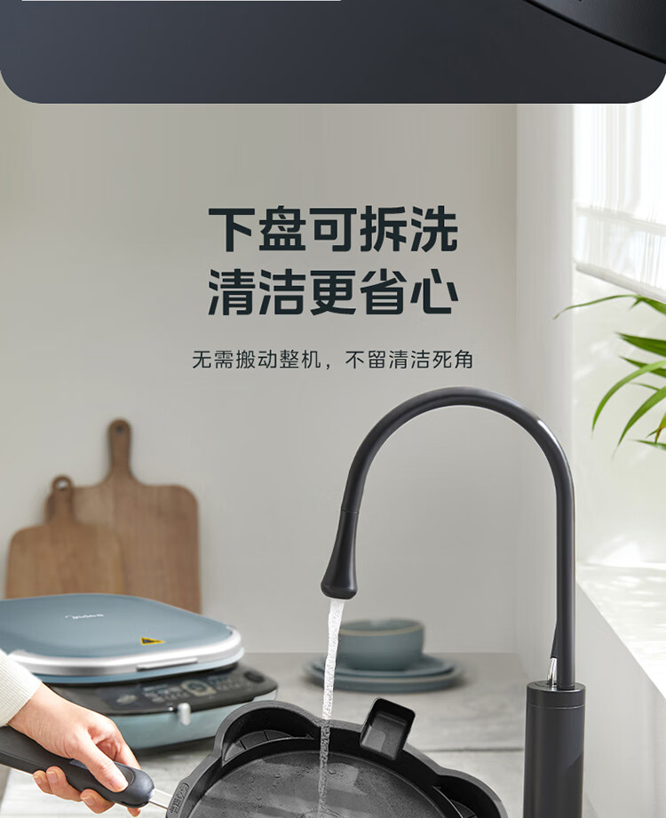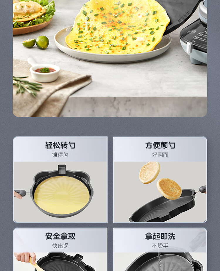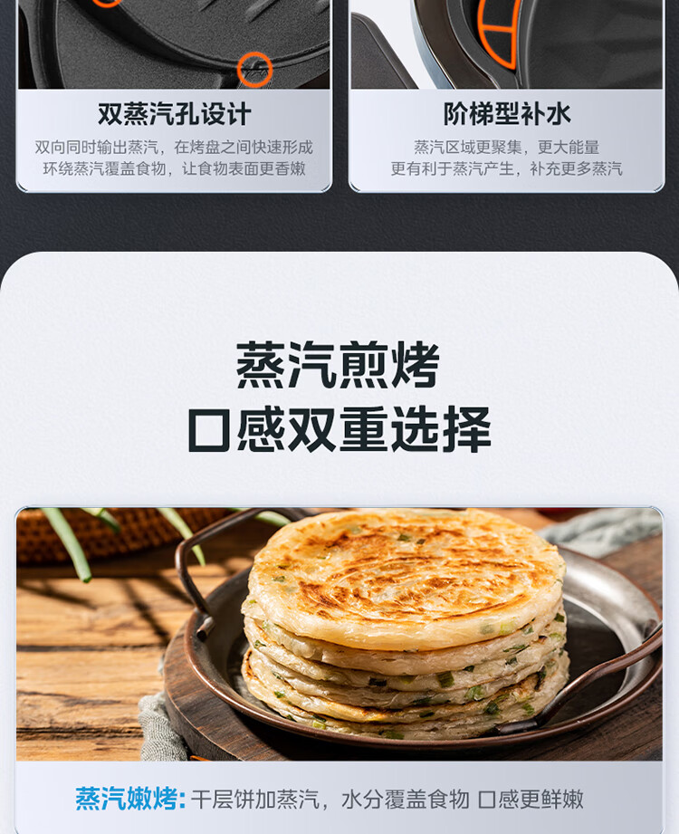 美的(Midea)电饼铛家用双面加热可拆洗煎饼铛煎烤机烙饼锅早餐机30mm加深烤盘滑控火力JKE30J63