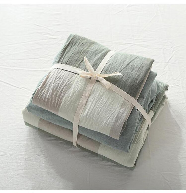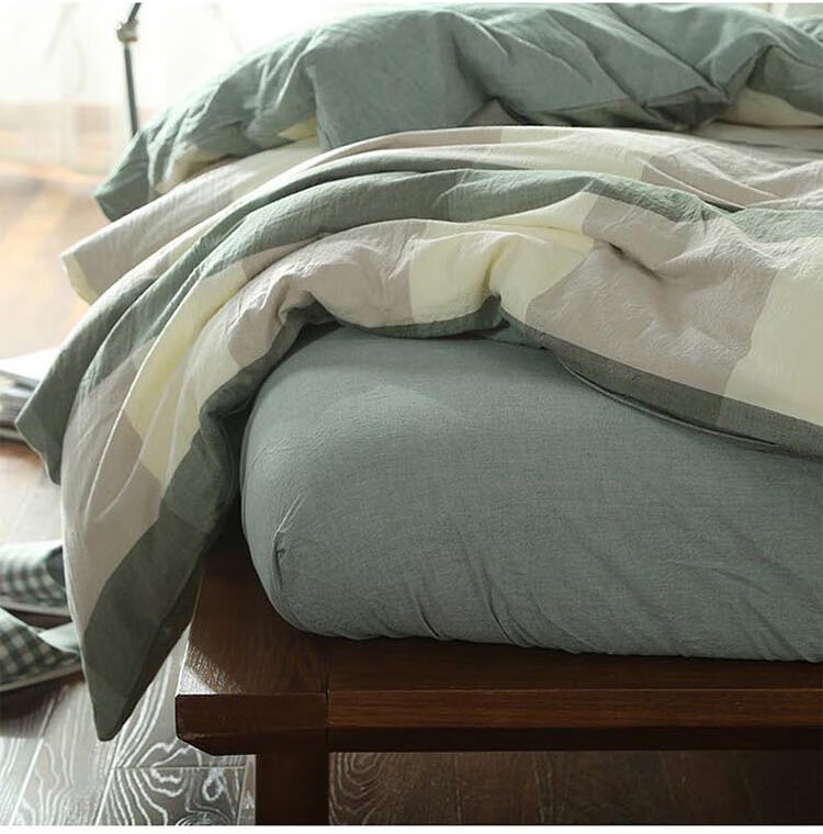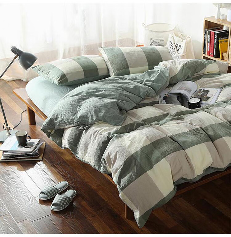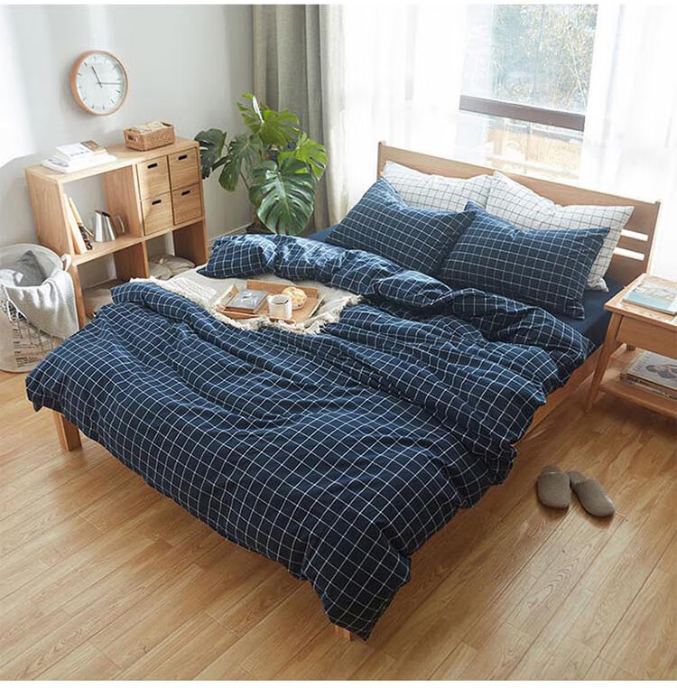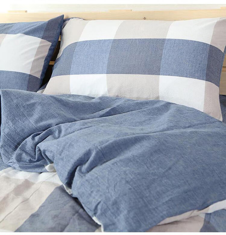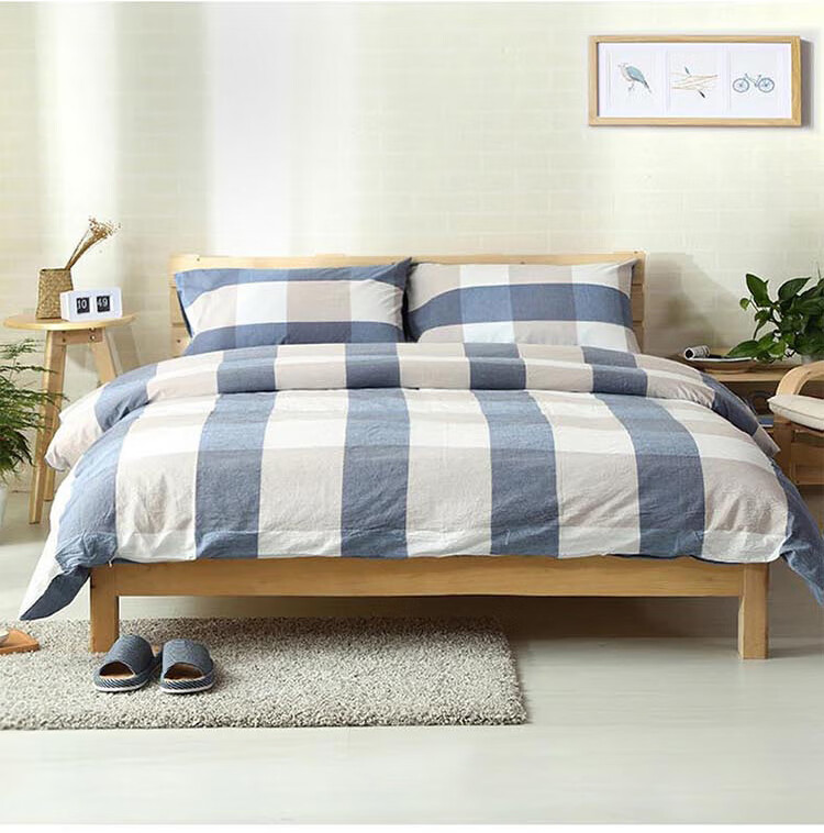 三极户外(Tri-polar)TP2980 床上用品日式无印风格水洗棉格子三件套 床单款 1.2米床 蓝大格
