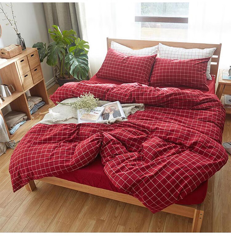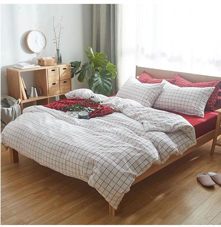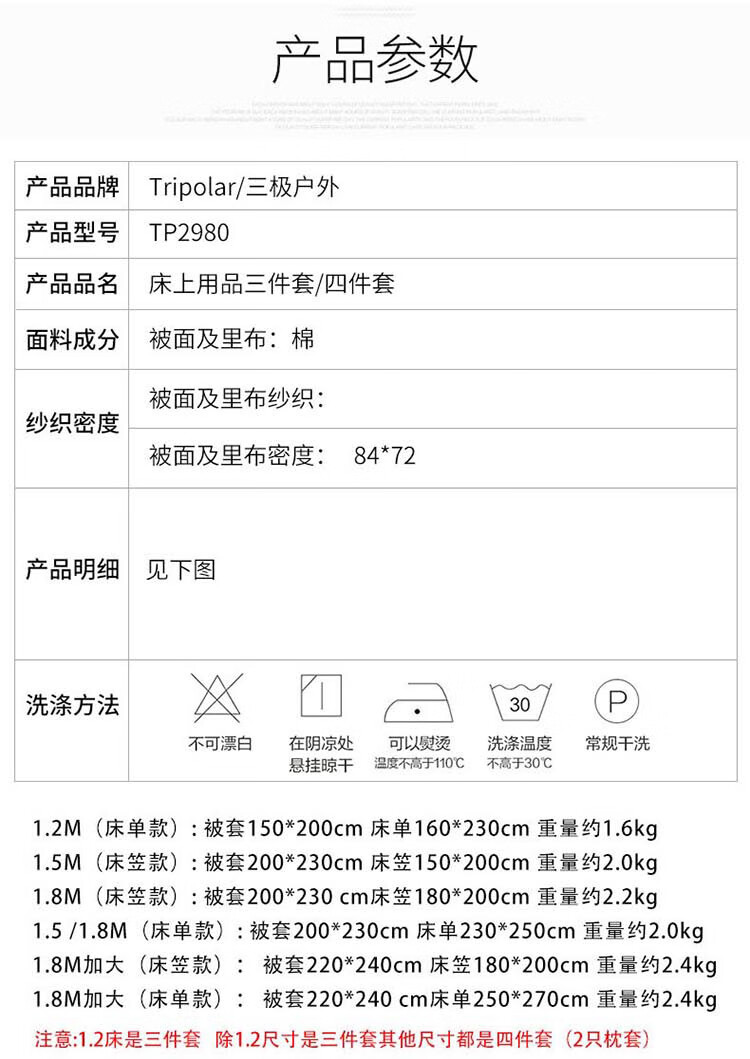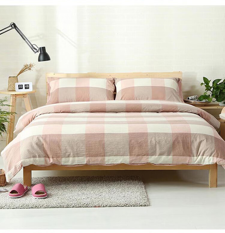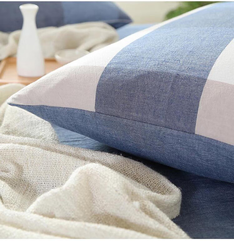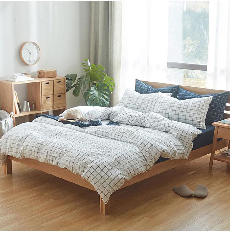 三极户外(Tri-polar)TP2980 床上用品日式无印风格水洗棉格子三件套 床单款 1.2米床 蓝大格