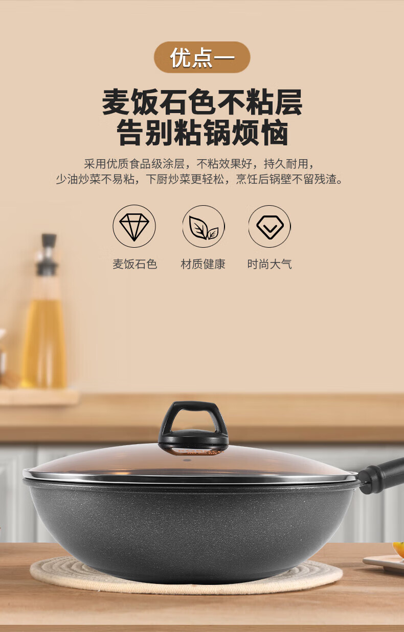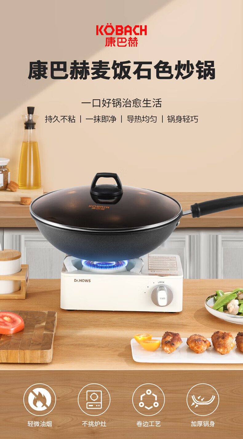 康巴赫炒锅麦饭石色炒锅煎炒两用...