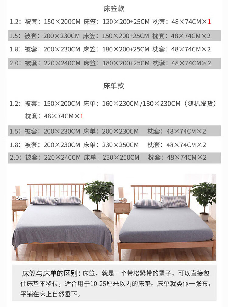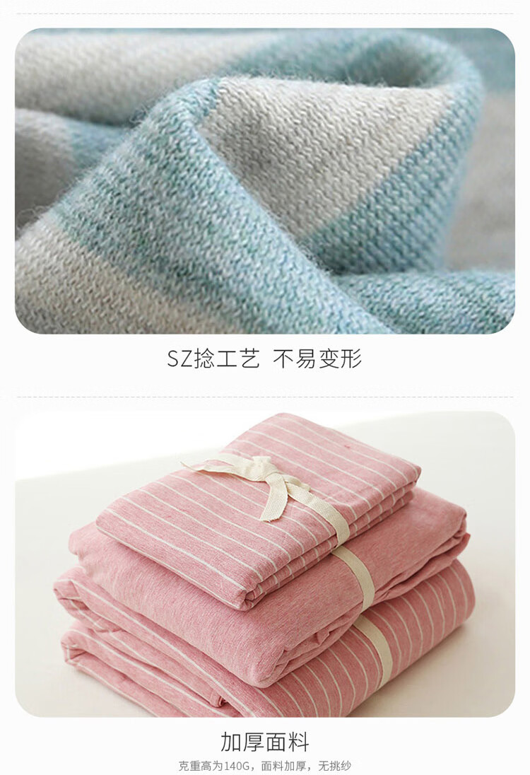 三极户外(Tri-polar)TP2957日式天竺棉三件套床罩被罩枕套针织棉简约床上用品 床笠款 1.2米床 粉灰细条