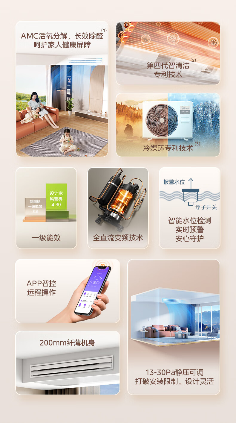 美的(Midea)中央空调风管机一拖一3匹全直流变频一级能效设计家KFR-72T2W/B3DN1-SJ(1)一价全包