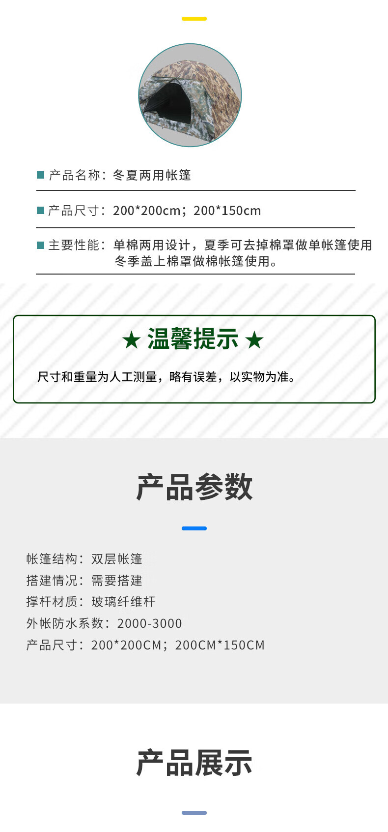 HDE 冬夏两用双人帐篷 户外加厚防寒保暖单人迷彩棉帐篷 2*1m荒漠星空