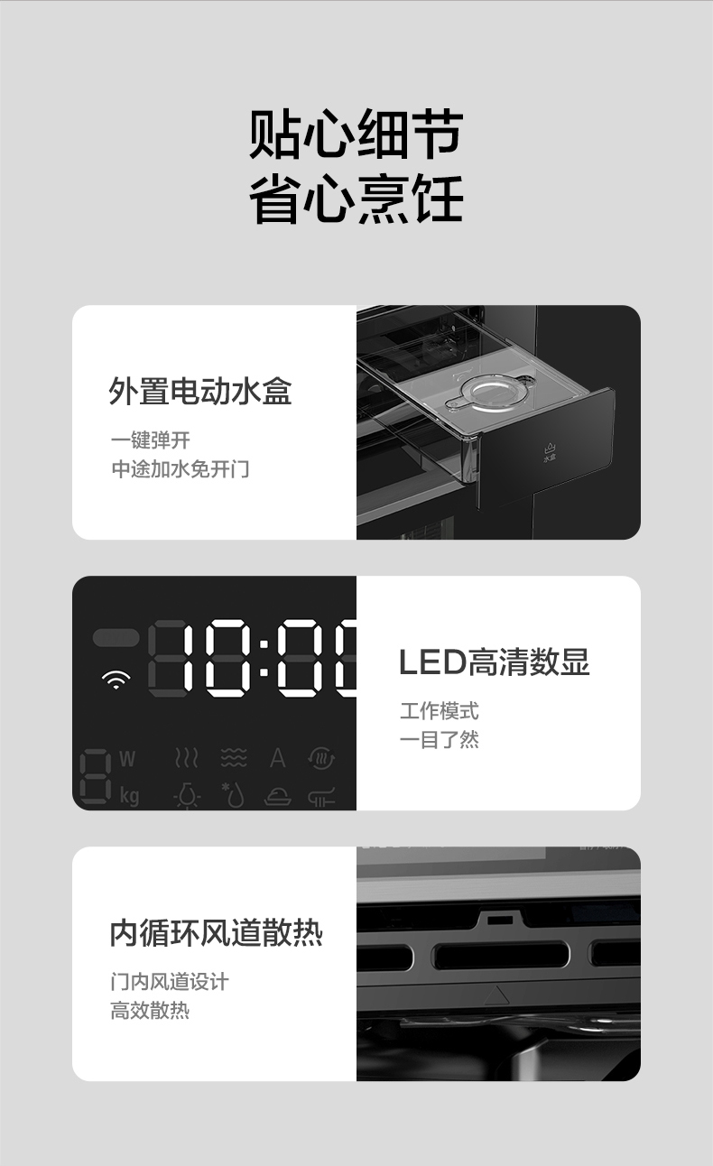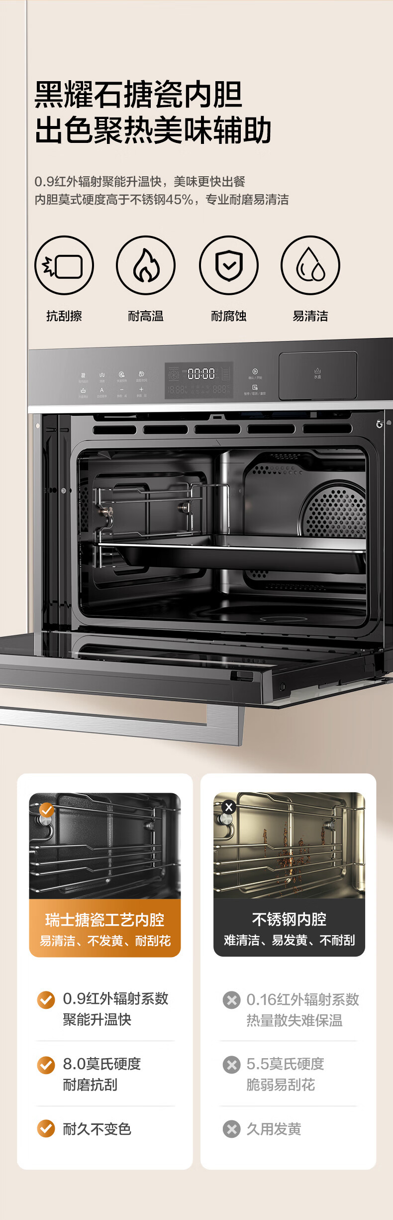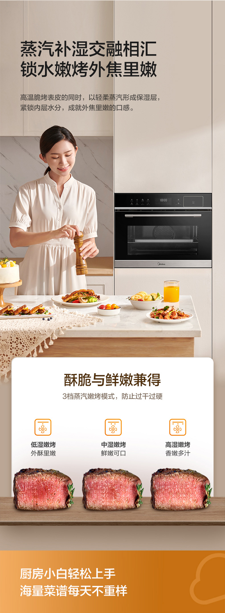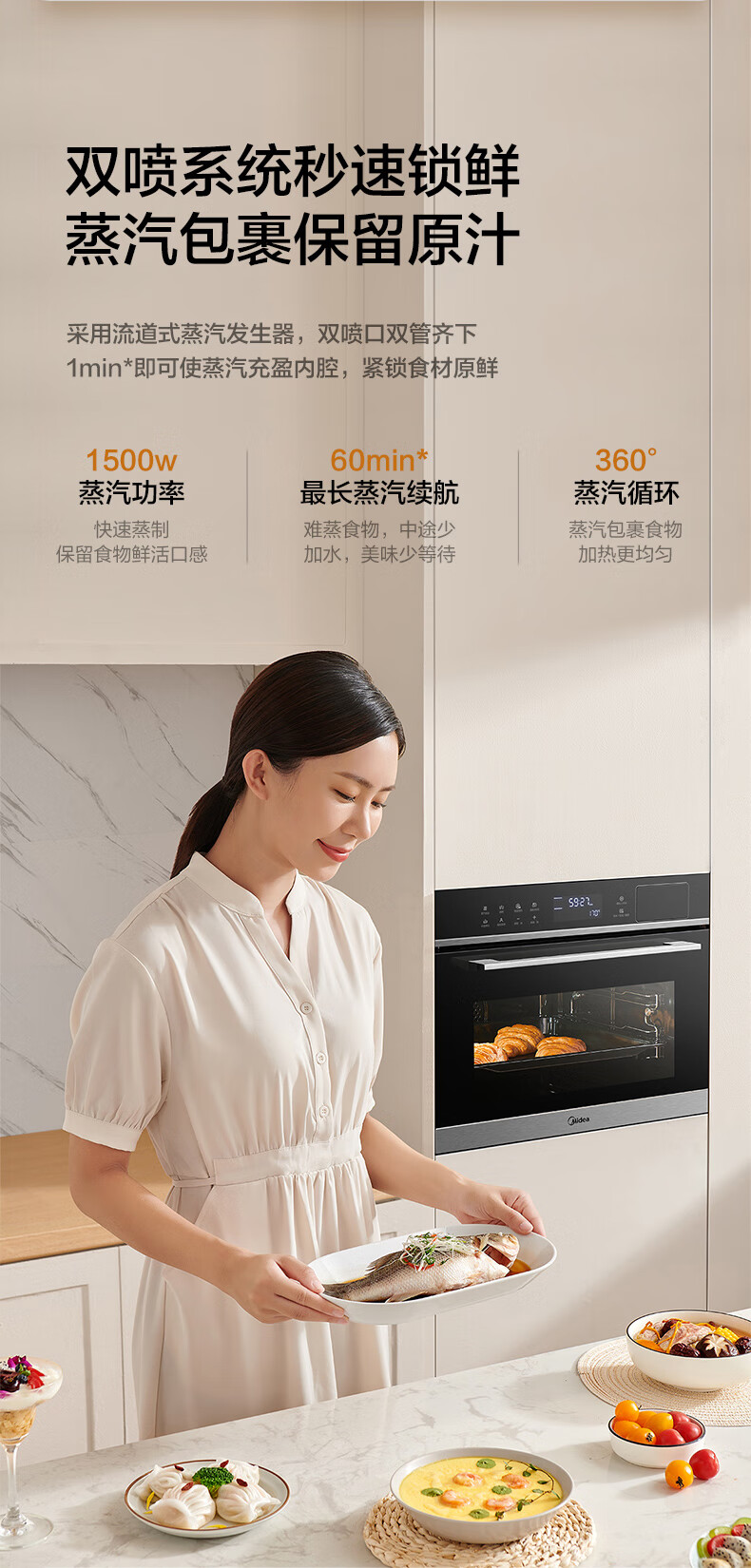 美的(Midea)嵌入式蒸烤箱一体机YA5048W(A50) 家用50L大容量多功能蒸箱烤箱二合一 搪瓷内胆 京东小家APP操控