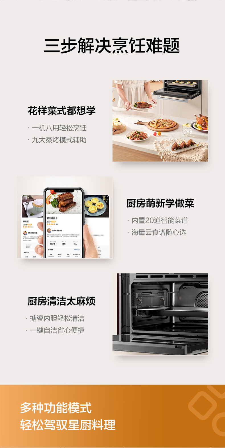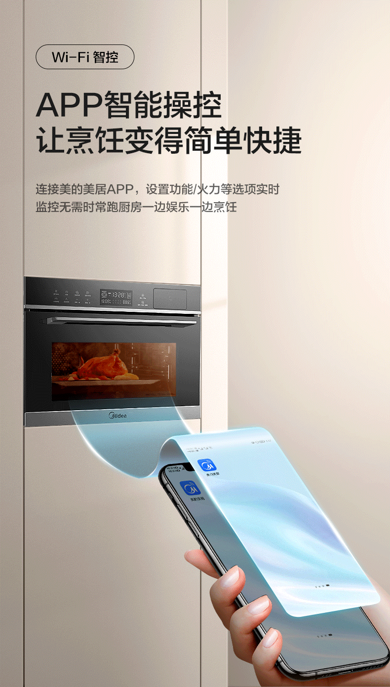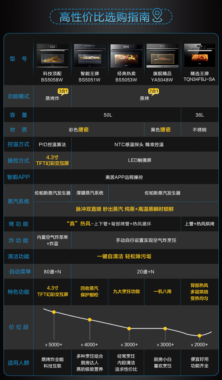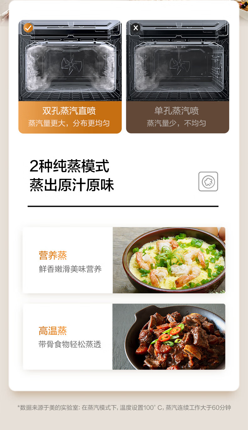 美的(Midea)嵌入式蒸烤箱一体机YA5048W(A50) 家用50L大容量多功能蒸箱烤箱二合一 搪瓷内胆 京东小家APP操控