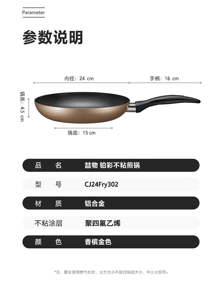 美的(Midea)煎锅不粘锅牛排锅平底锅煎蛋锅煎饼锅炒菜锅CJ24Fry302M金色