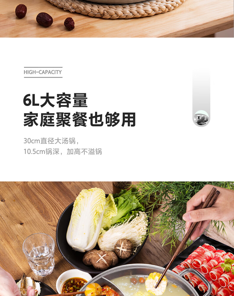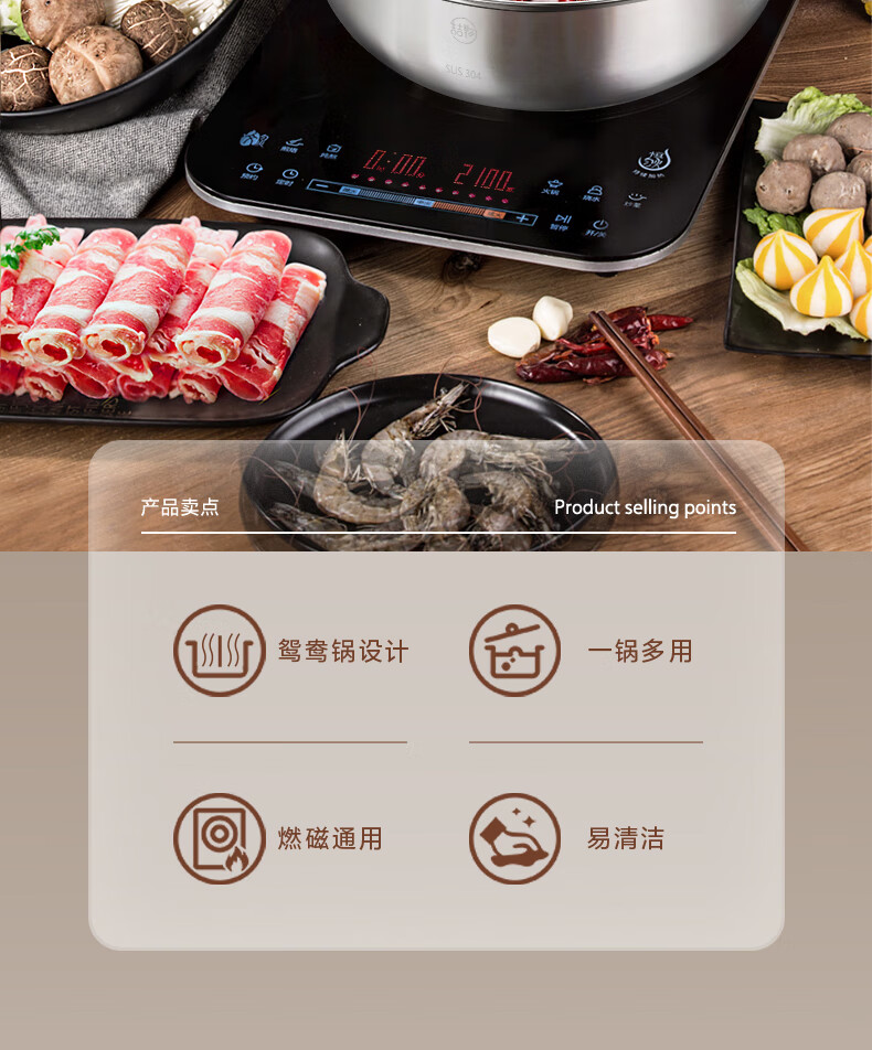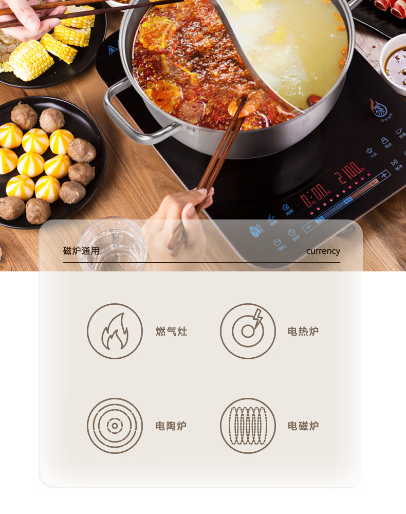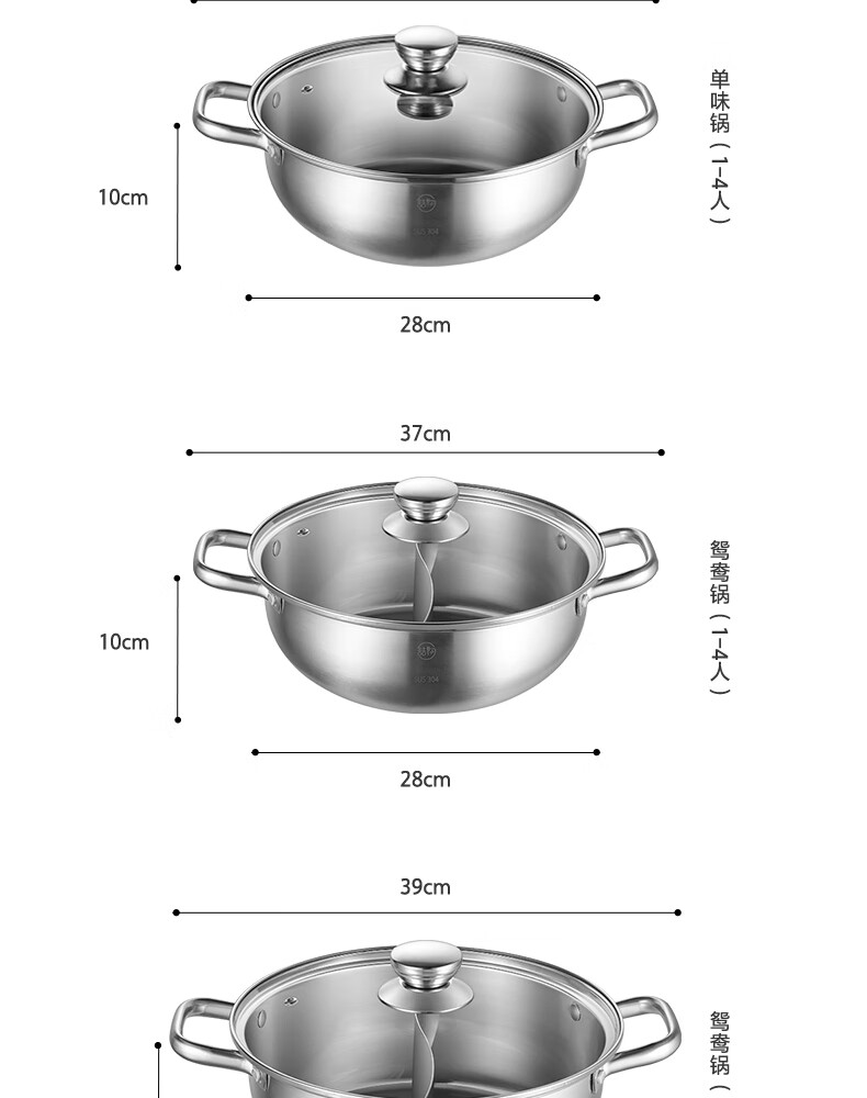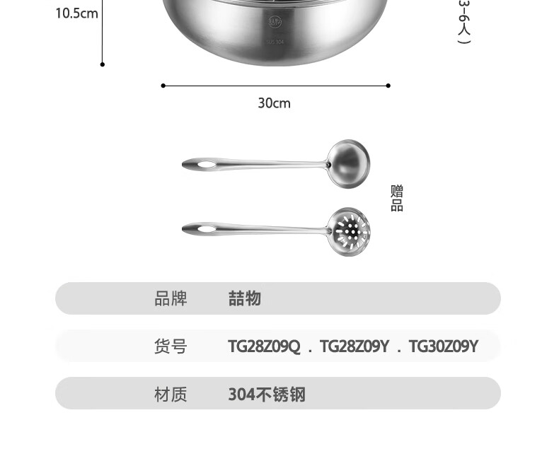 美的(Midea)火锅304不锈钢鸳鸯锅30CM火锅盆汤锅加厚锅具电磁炉通用TG30Z09Y