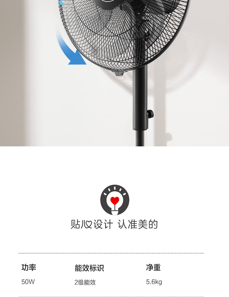 美的(Midea)电风扇落地扇家用大风量轻音电扇立式易拆洗节能省电风扇卧室客厅大风力电扇
