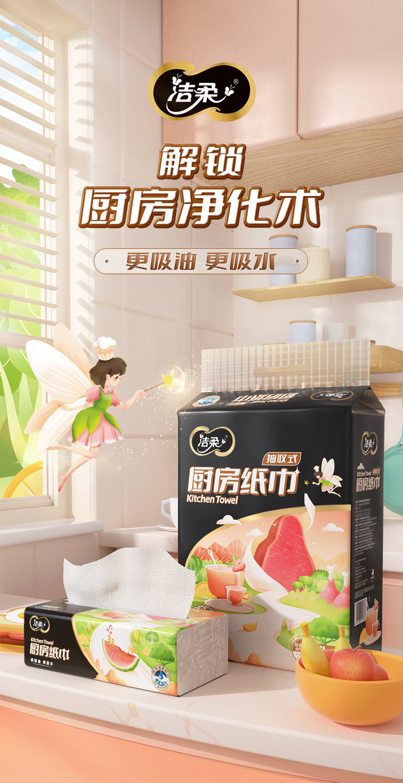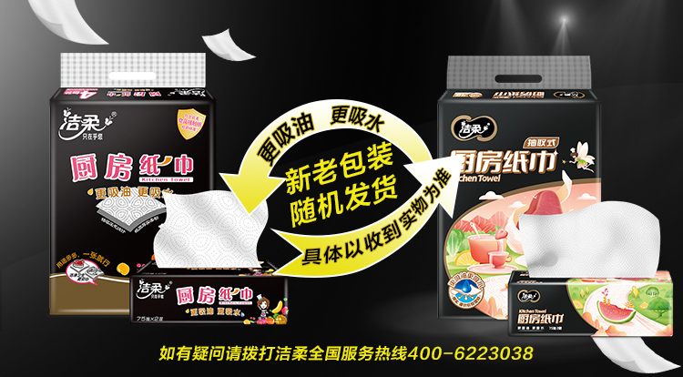 洁柔厨房抽纸巾 双层300张食品级 加倍吸水吸油大规格 75抽4包