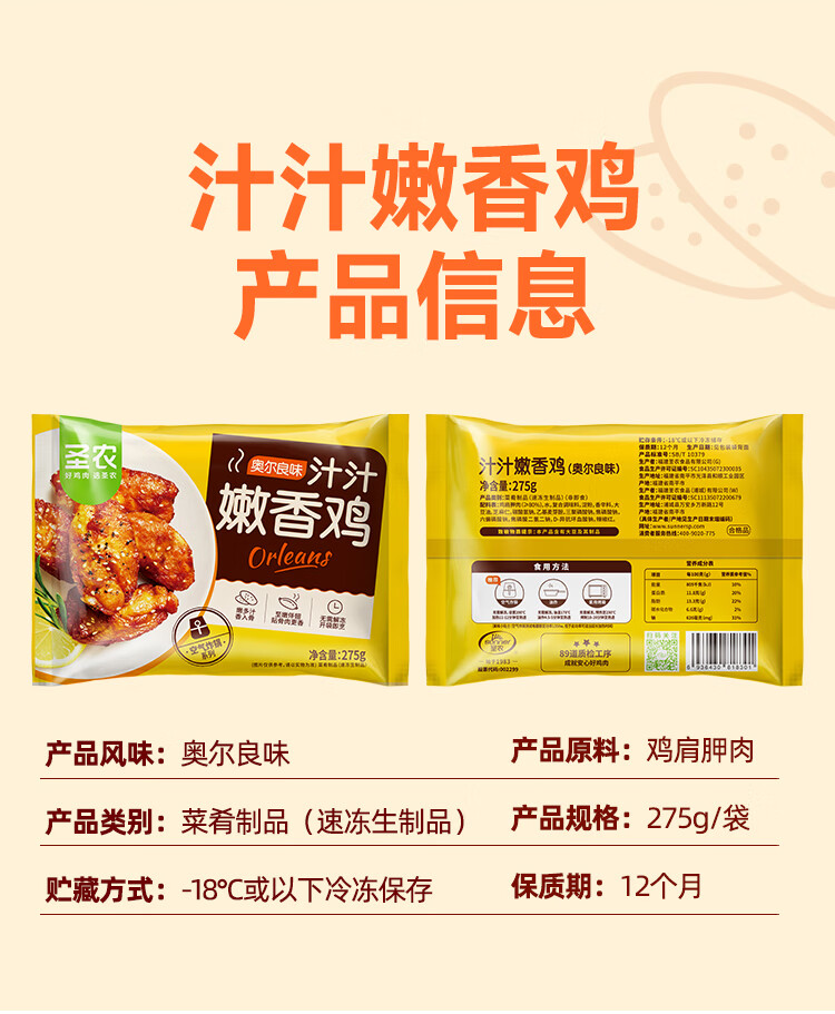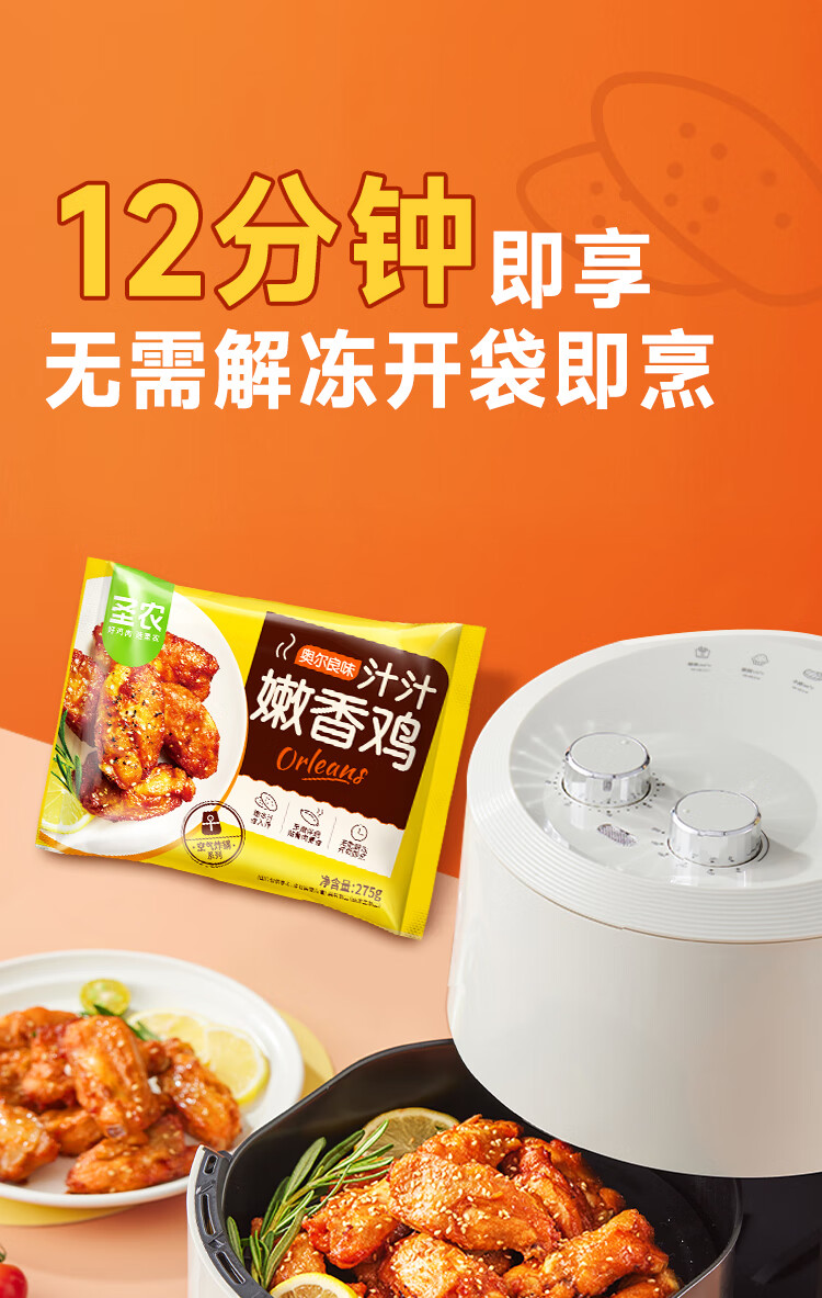 圣农汁汁嫩香鸡275g 炸鸡伴翅奥尔良味腌制半成品 空气炸锅食材生鲜