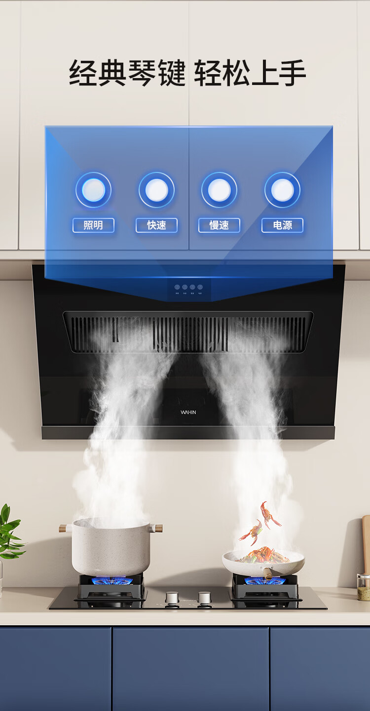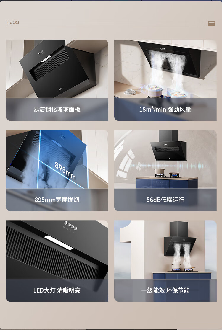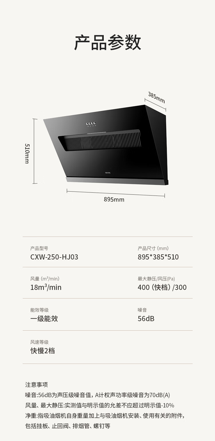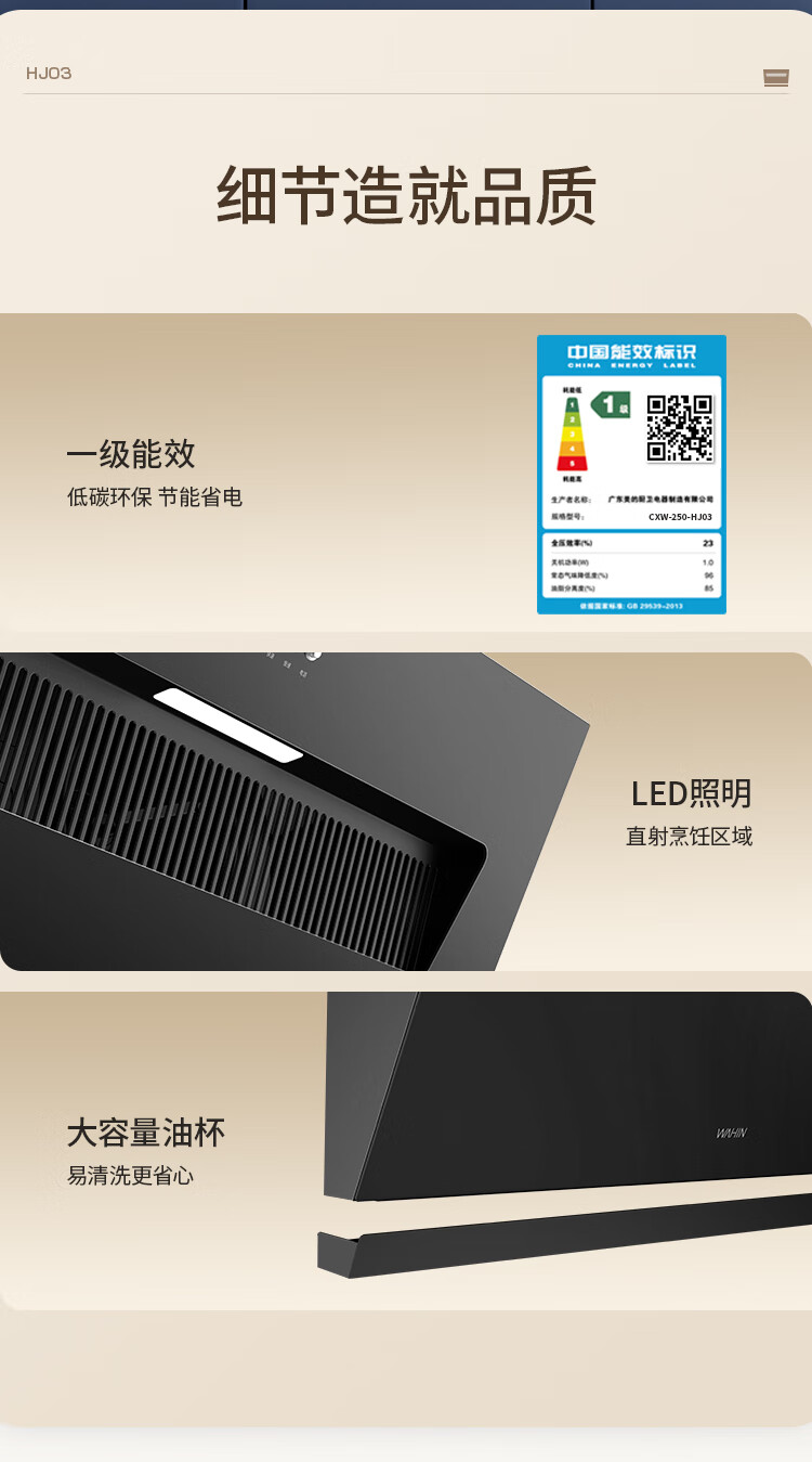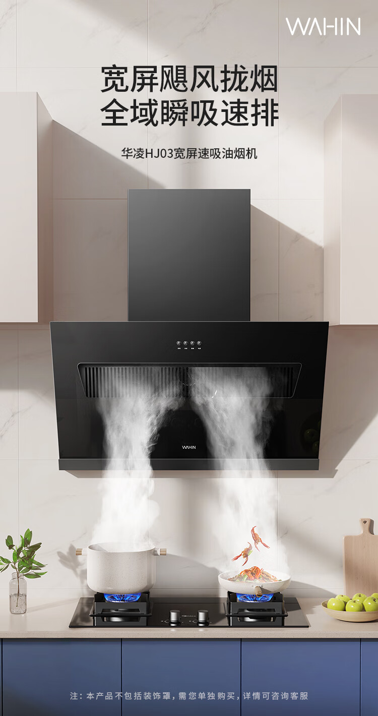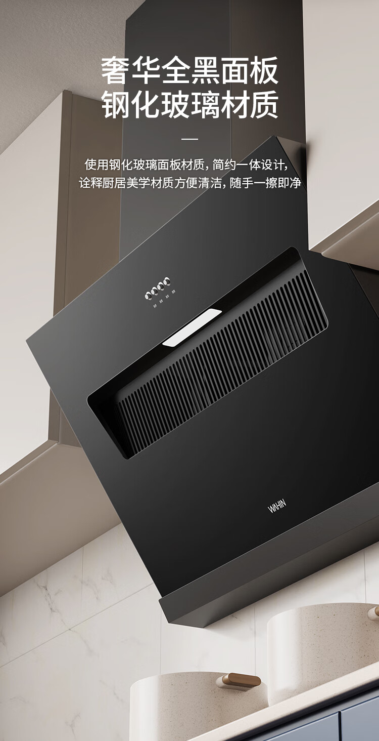 美的(Midea)出品 侧吸华 凌油烟机抽油烟机 易清洁钢化玻璃面板 18m³/min爆炒大吸力一级能效CXW-250-HJ03