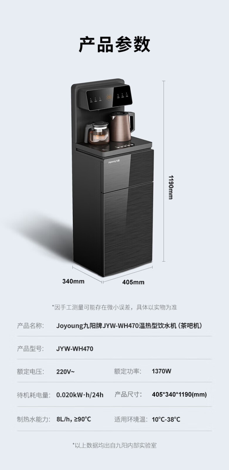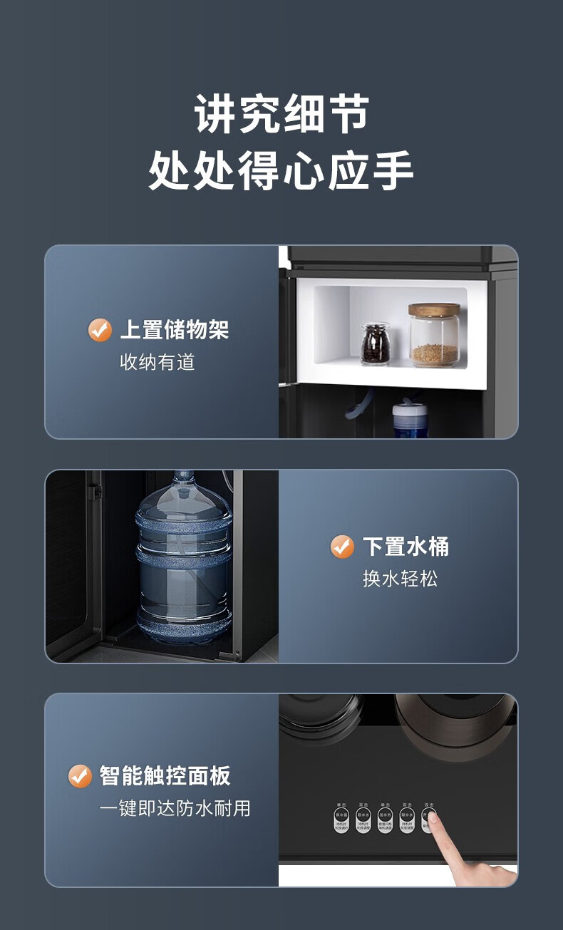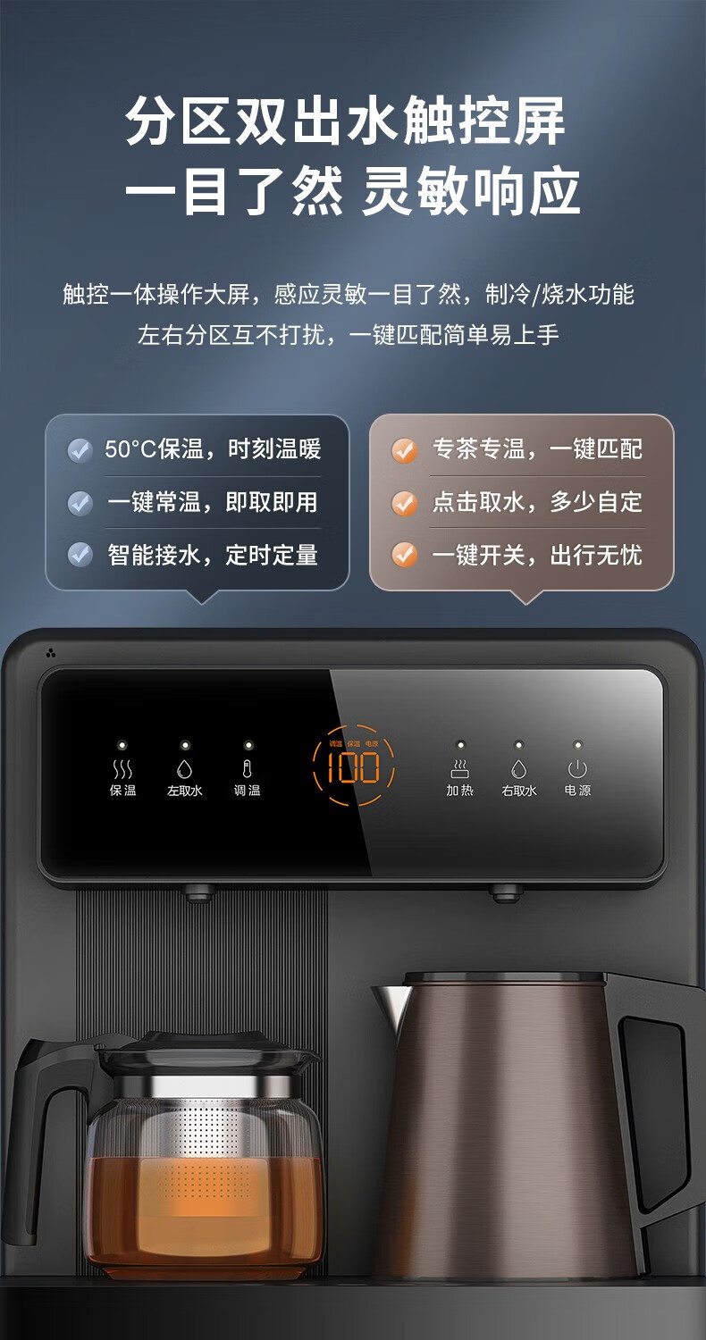 九阳(Joyoung) 茶吧机家用立式下置式水桶饮水机智能触控双壶全自动饮水机 JYW-WH470【智能温热款】