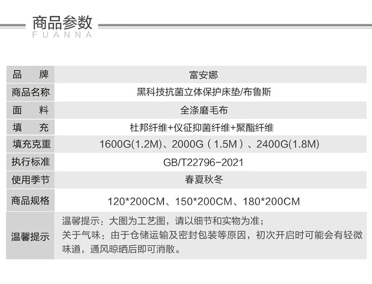 富安娜家纺床垫 抗菌升级保护床垫可折叠防水单人宿舍褥子床垫子1米2床