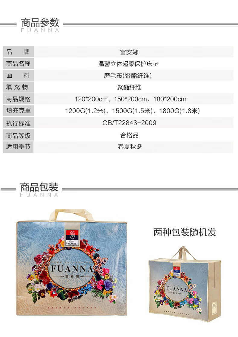富安娜家纺床垫 床褥保护垫可折叠水洗床垫子 加厚防滑学生宿舍1米2床