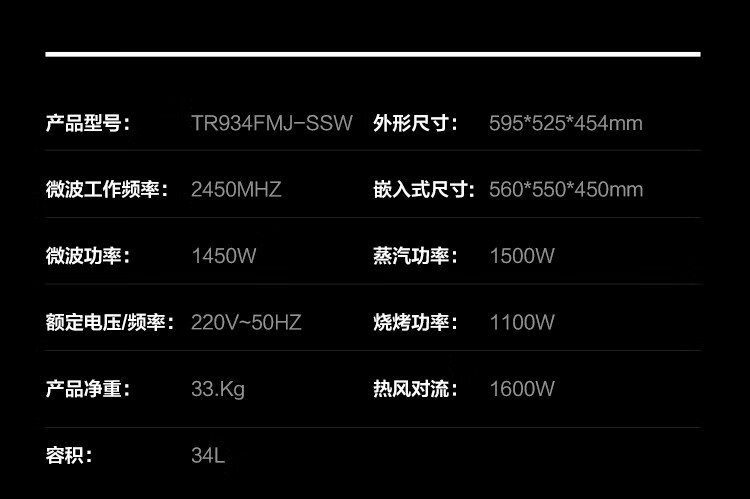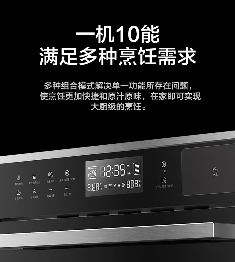 美的(Midea)名爵 34L嵌入式微蒸烤一体机 功能三合一 家用多功能烘焙嵌入式微波炉蒸箱烤箱 TR934FMJ-SSW