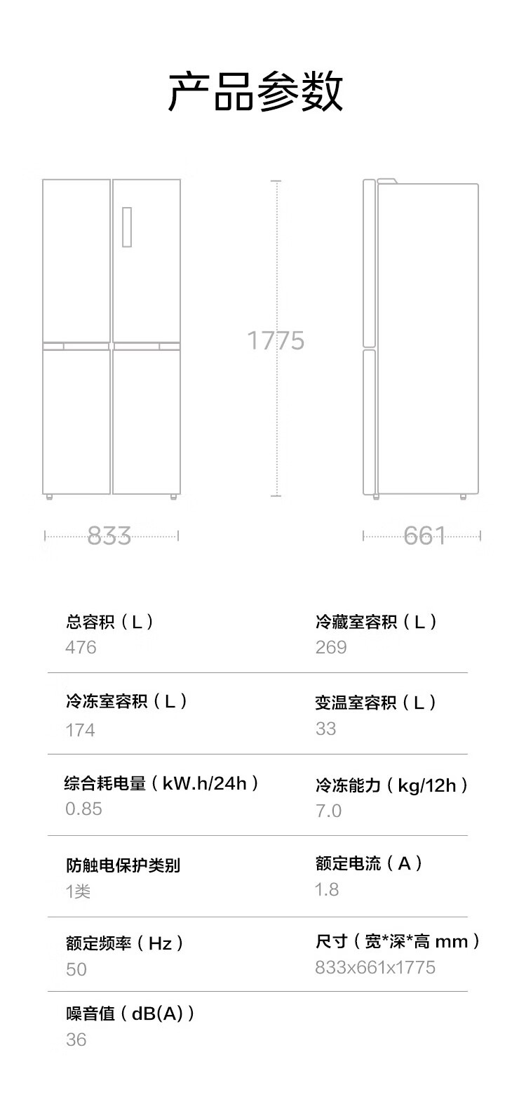 美的(Midea)476升十字...