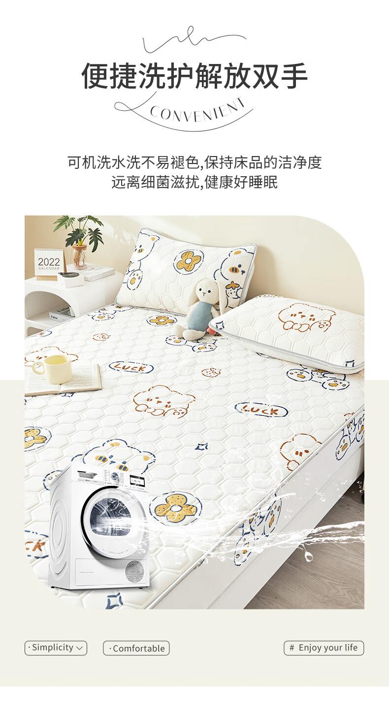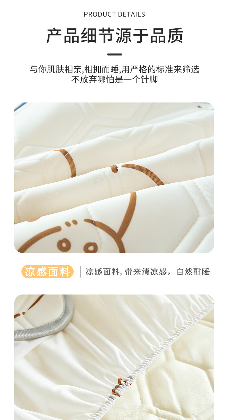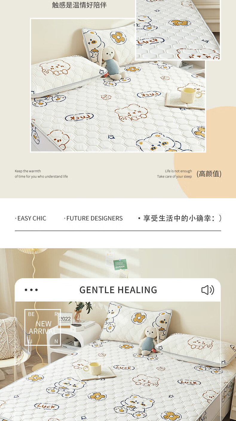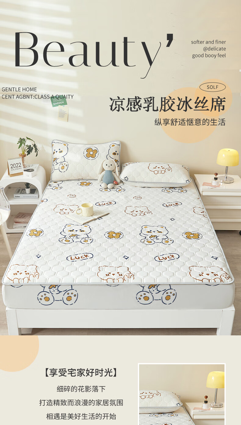 洁丽雅(Grace)乳胶夏凉席 A类冰丝席单席床笠款软席垫可折叠单席 1.8米 幸运熊