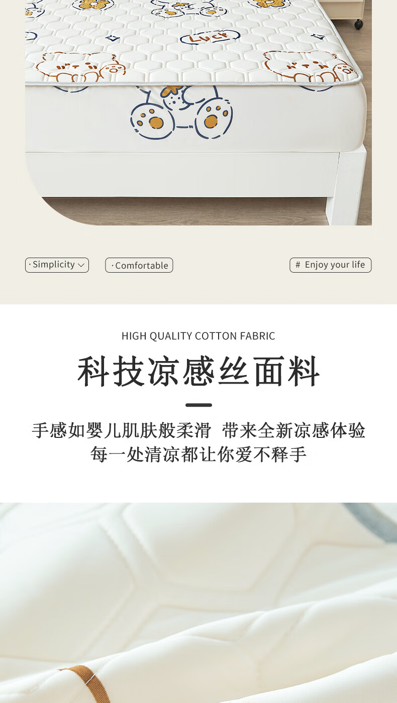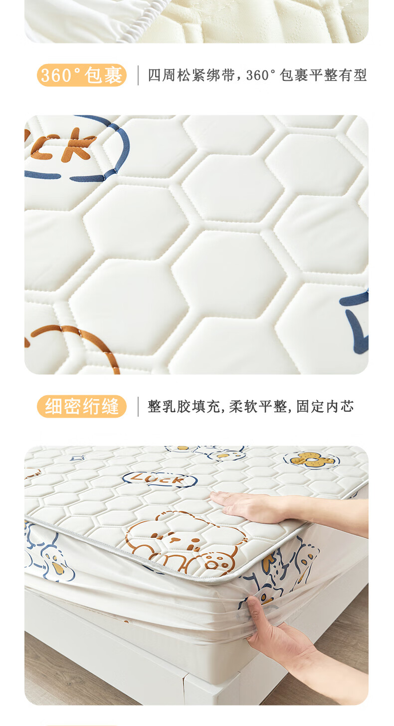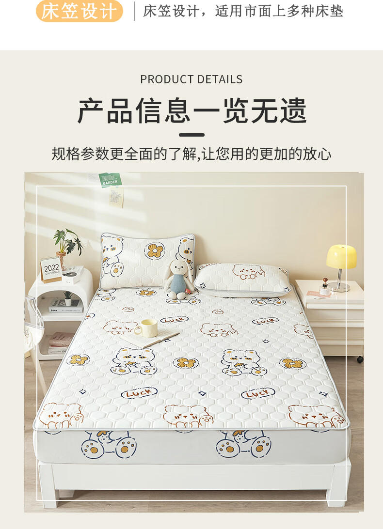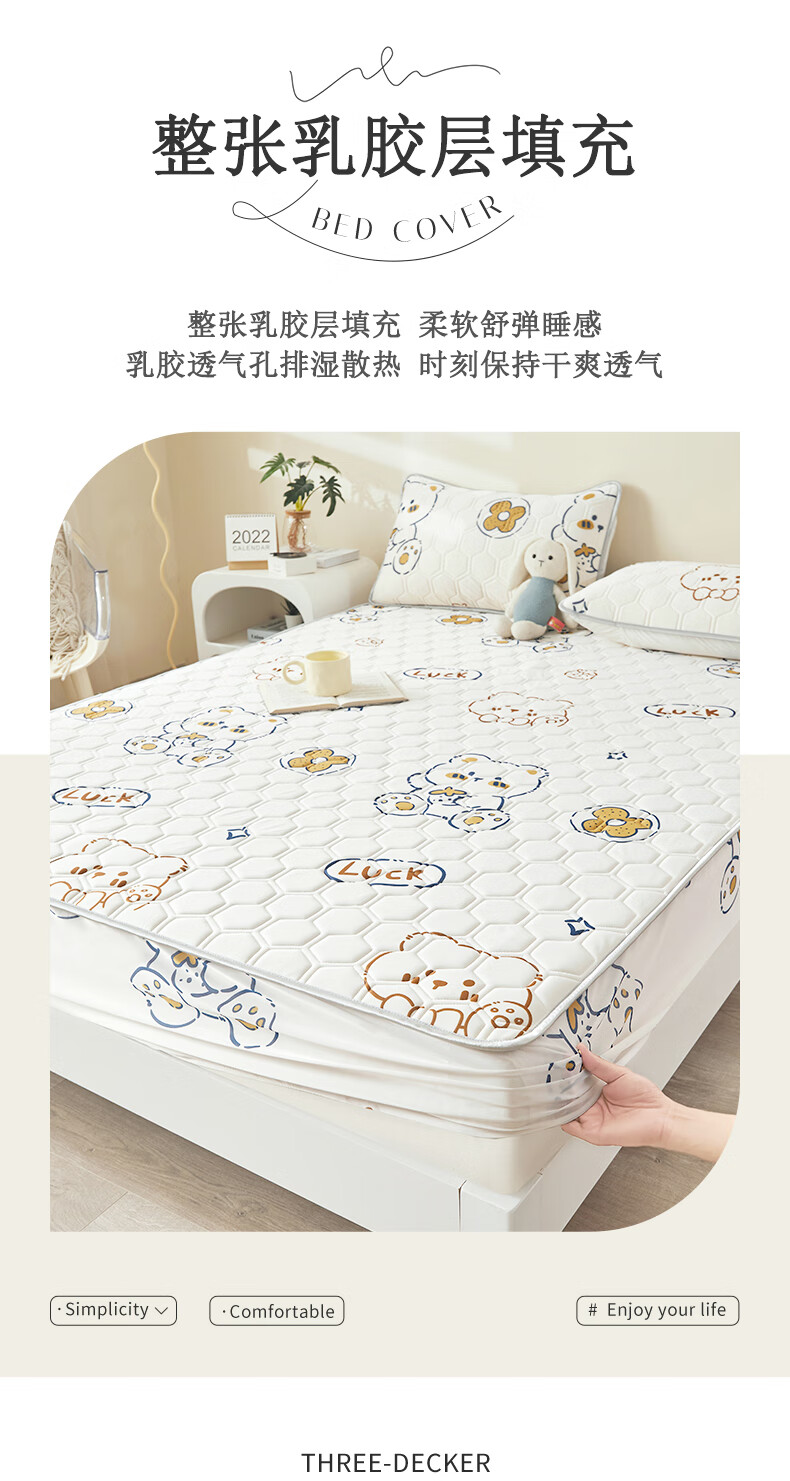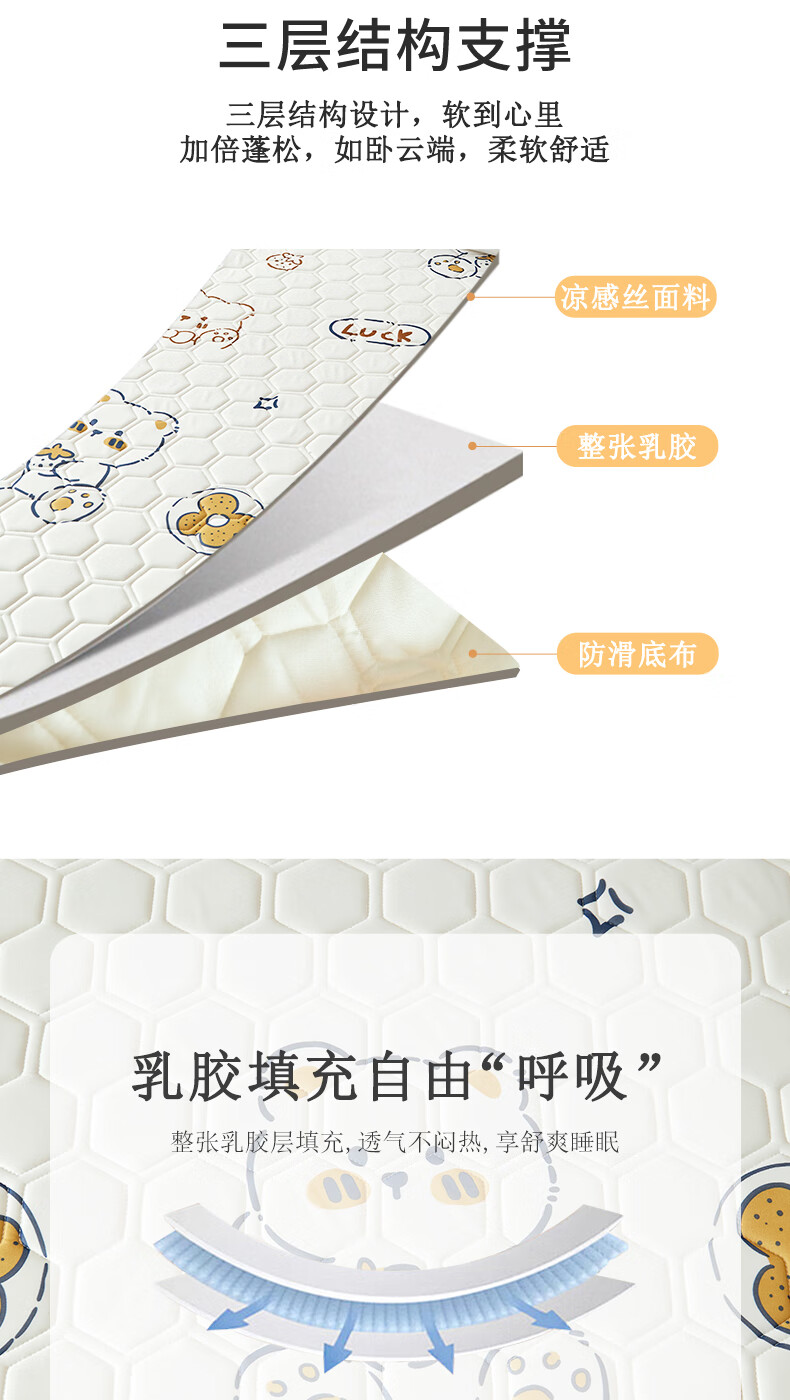 洁丽雅(Grace)乳胶夏凉席 A类冰丝席单席床笠款软席垫可折叠单席 1.8米 幸运熊