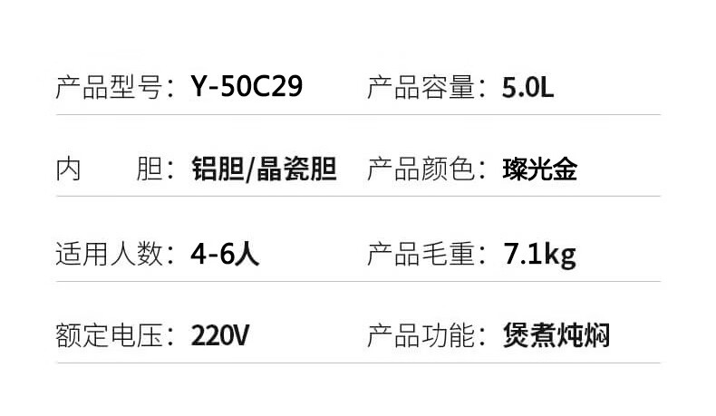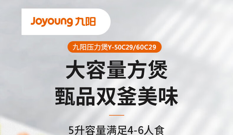九阳(Joyoung)电压力锅 铁釜胆家用电压力煲智能预约多功能高压锅高颜值小巧 Y-50C29S
