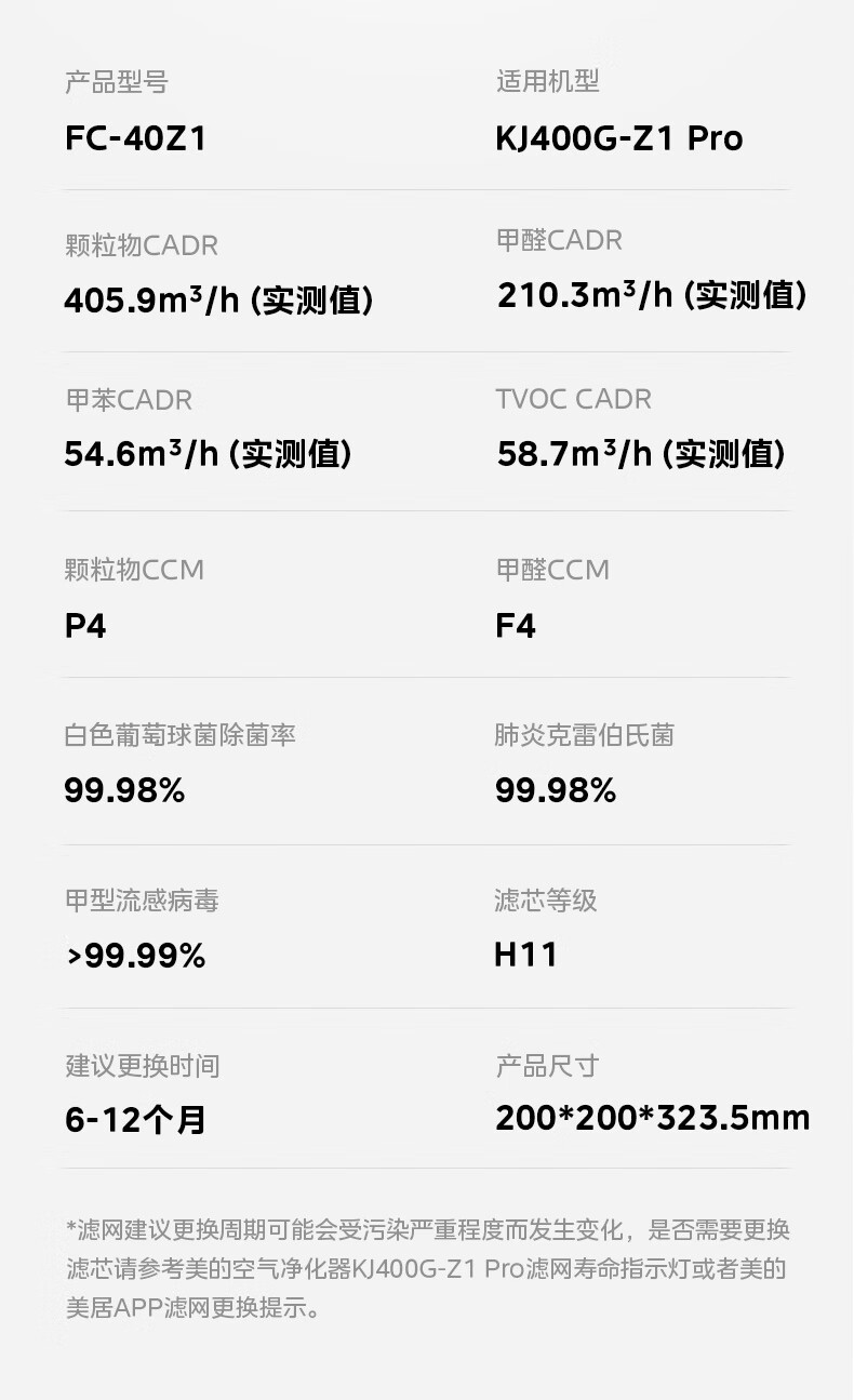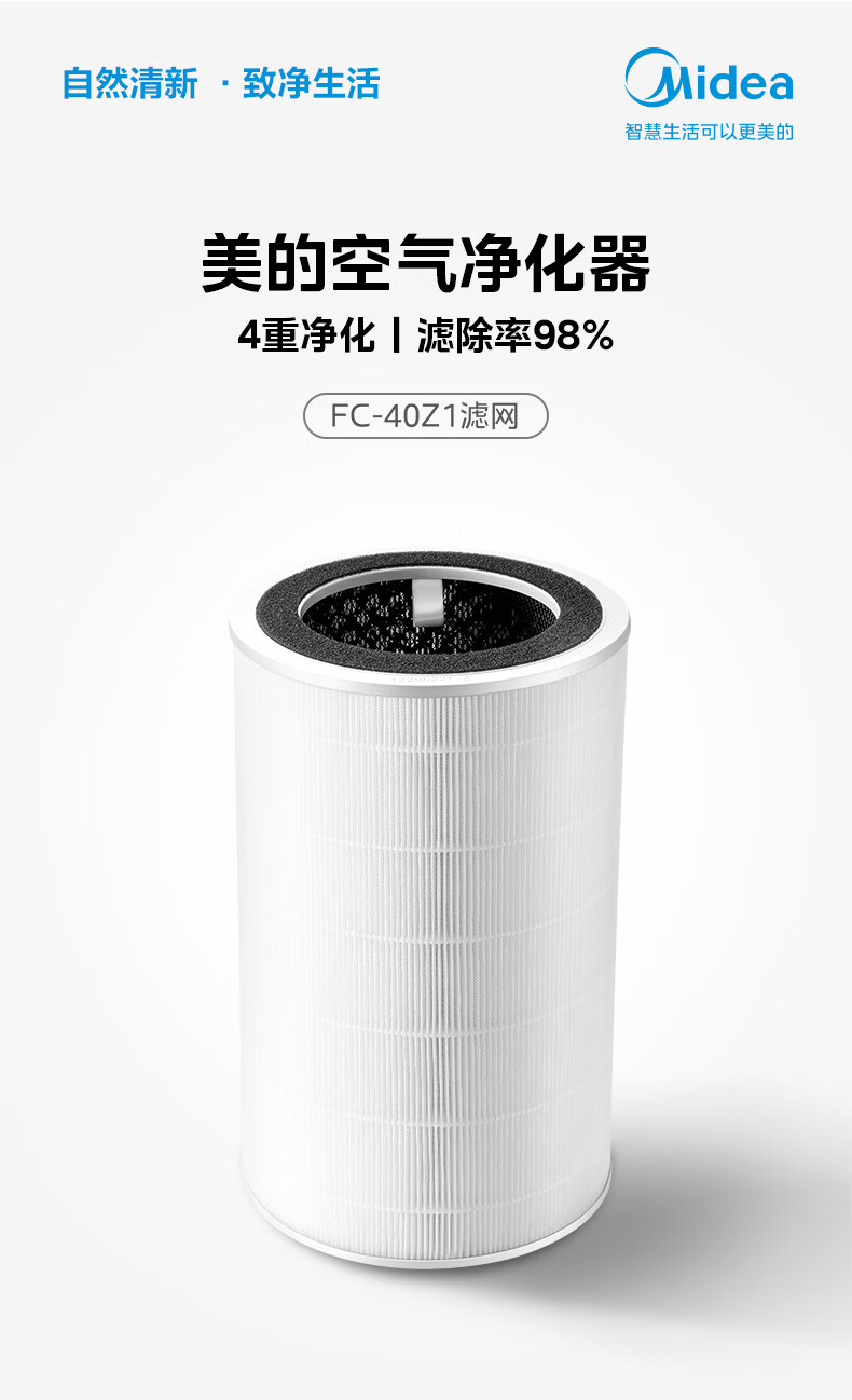 美的(Midea)空气净化器滤芯除甲醛除异味除颗粒物净化器Z1pro原装滤网FC-40Z1