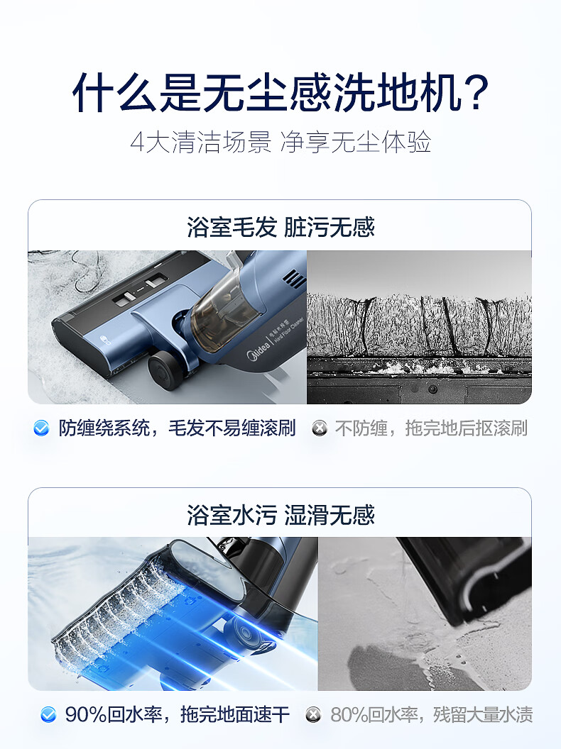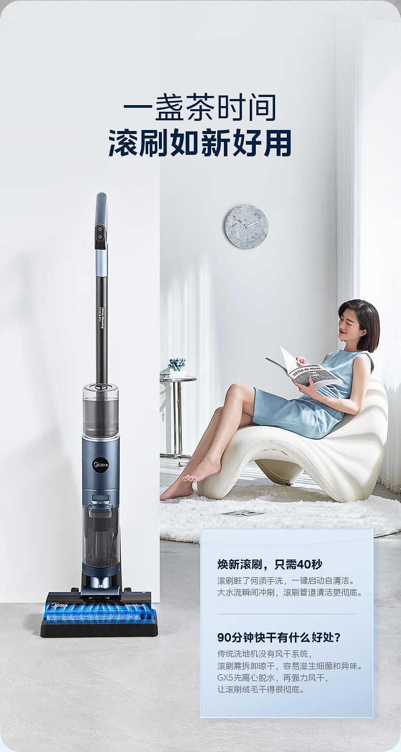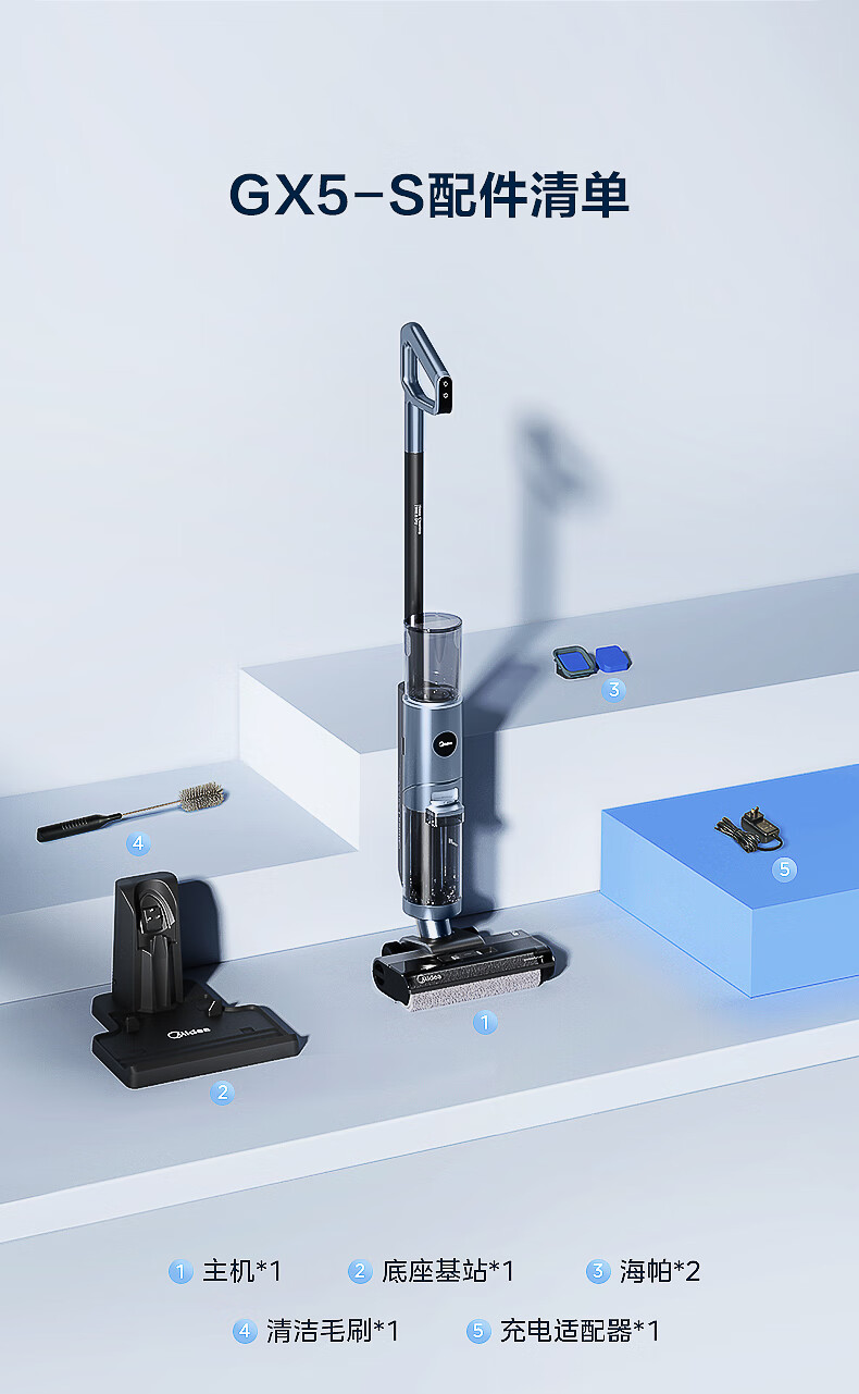 美的(Midea)洗地机GX5【现货直发!最快当日达】洗拖吸一体机手持吸尘器自清洁无尘感洗地机实时电解水