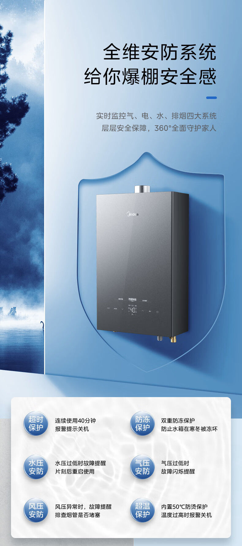 美的(Midea)13L燃气热水器水汽双调 恒温家用燃气热水器 JSQ25-13XP3*